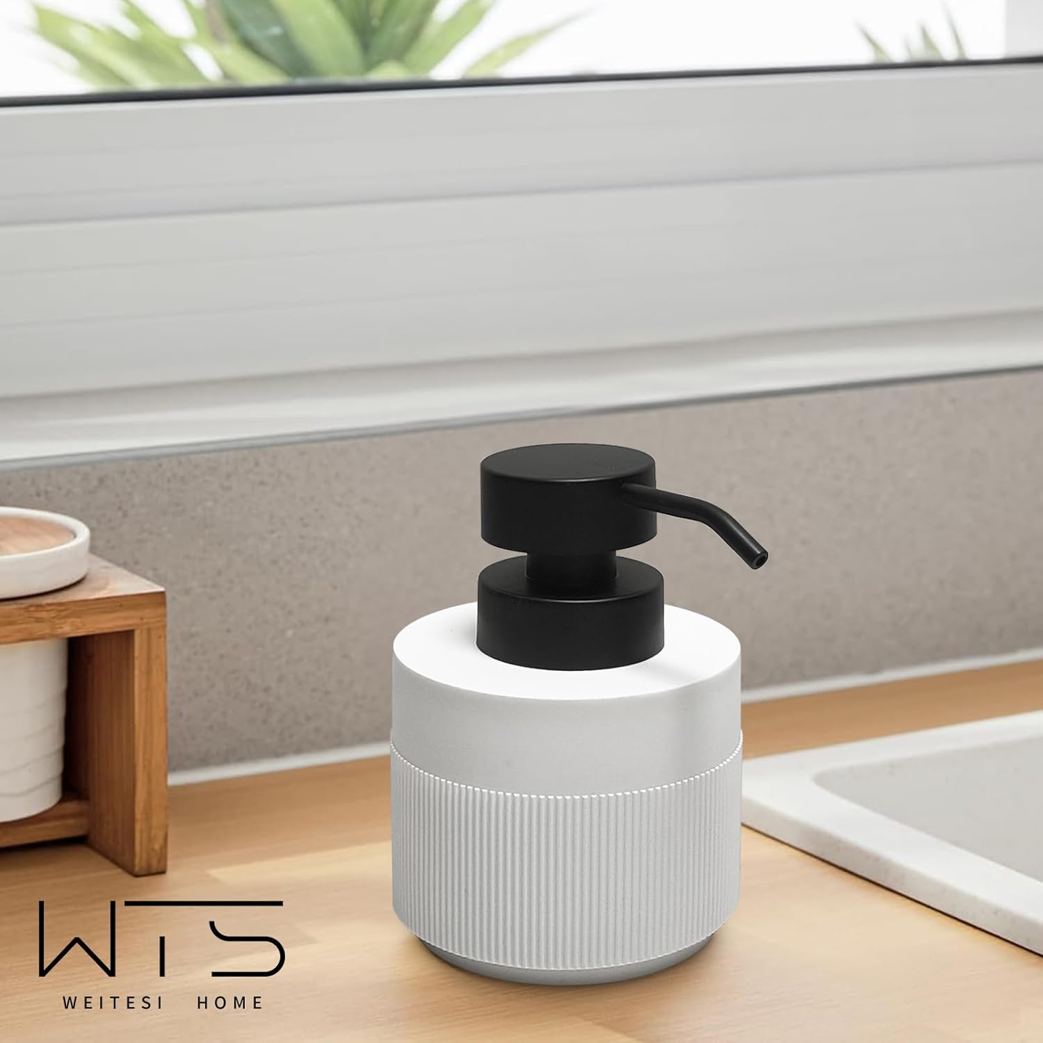 - Stylish Modern Design: With a sleek matte finish and finely polished edges, this soap dispenser adds a touch of elegance to your space. The uniquely designed vertical stripes on the lower half enhance its aesthetic appeal, making it a stylish accessory that complements contemporary and minimalist decor.