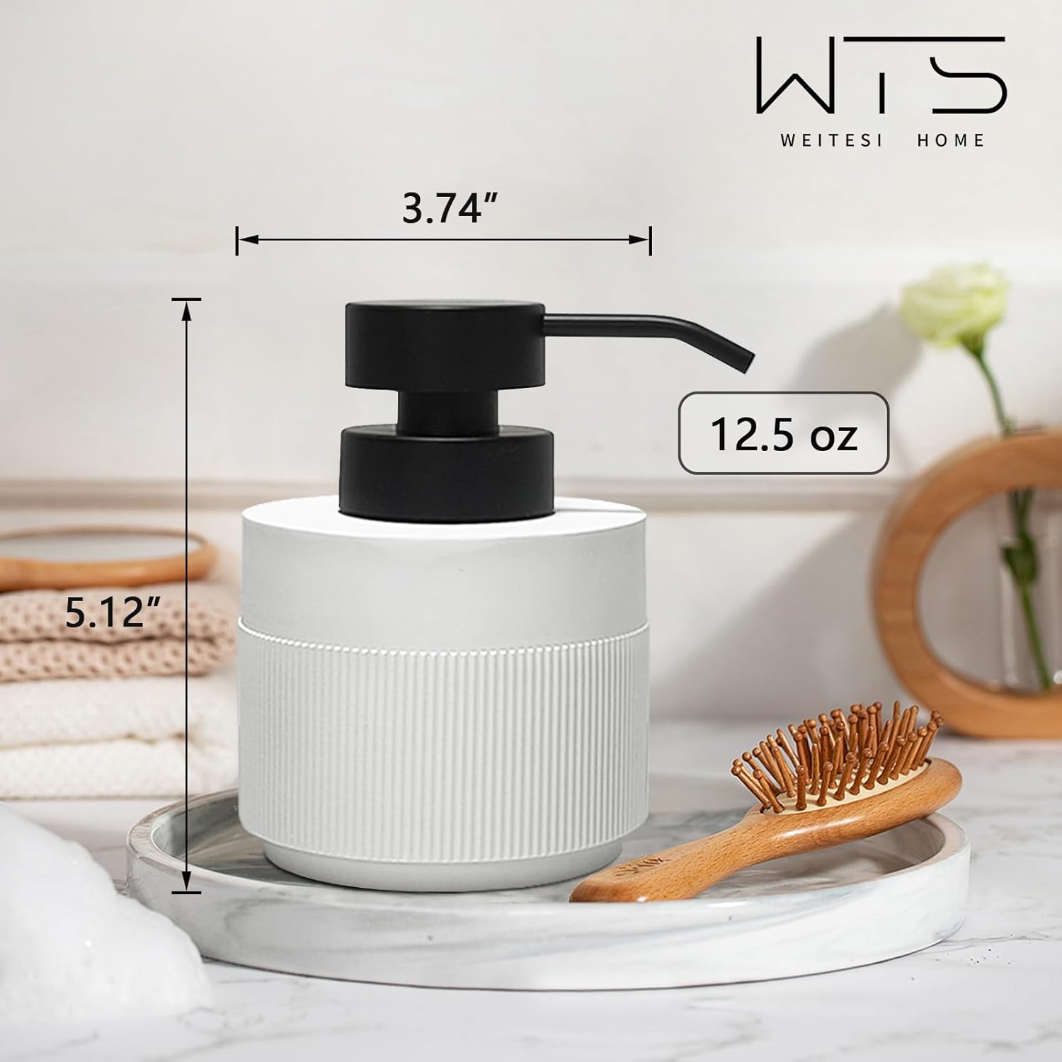 Resin Soap Dispenser for Bathroom, Hand Lotion Liquid Dispenser Easy-to-Press with Reusable Plastic Pump for Shampoo Bathroom Kitchen Countertop Anti-Slip Rust-Proof 12.5 oz White