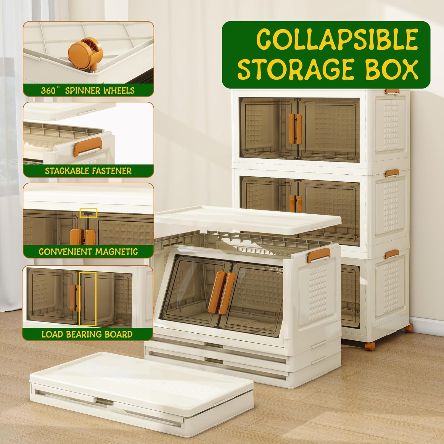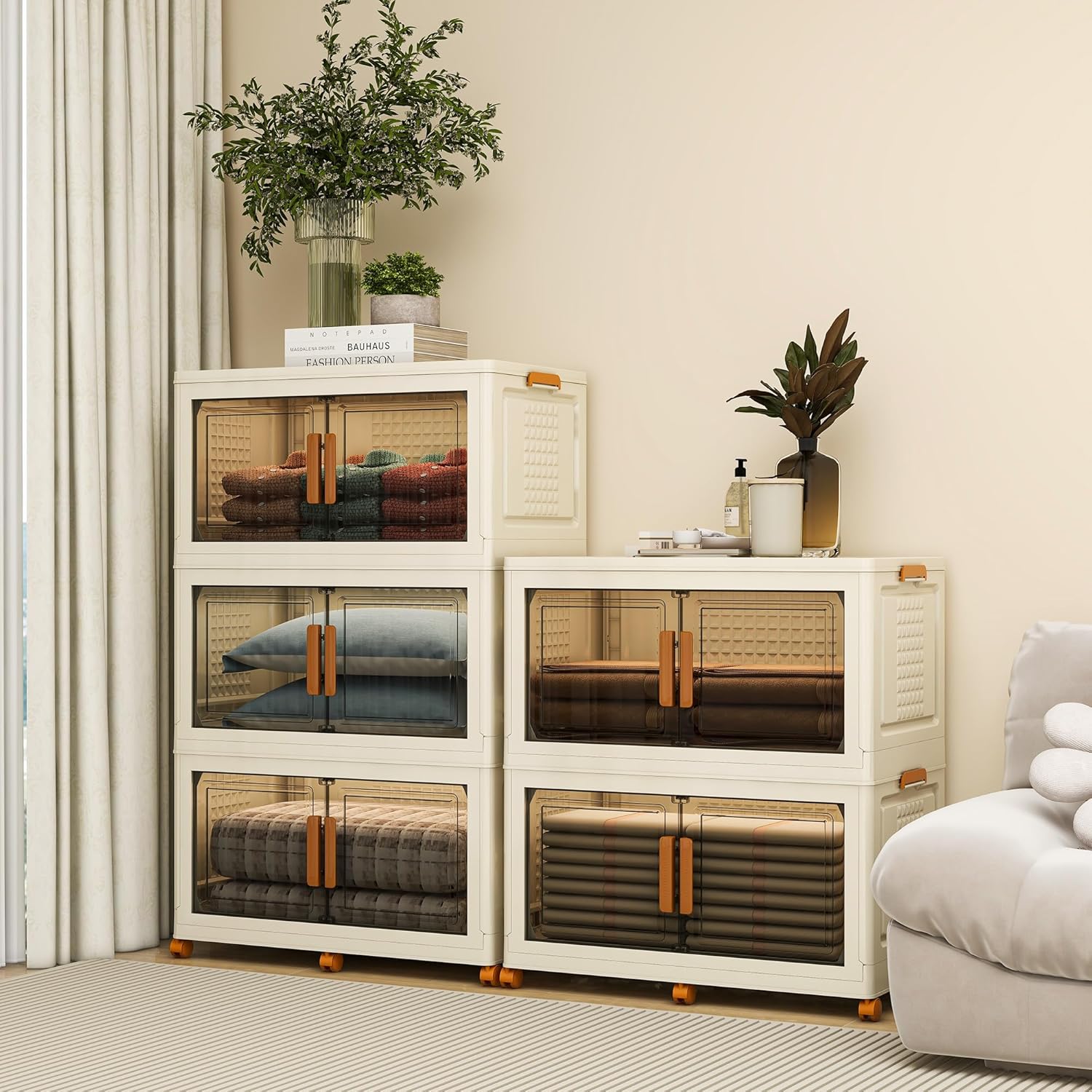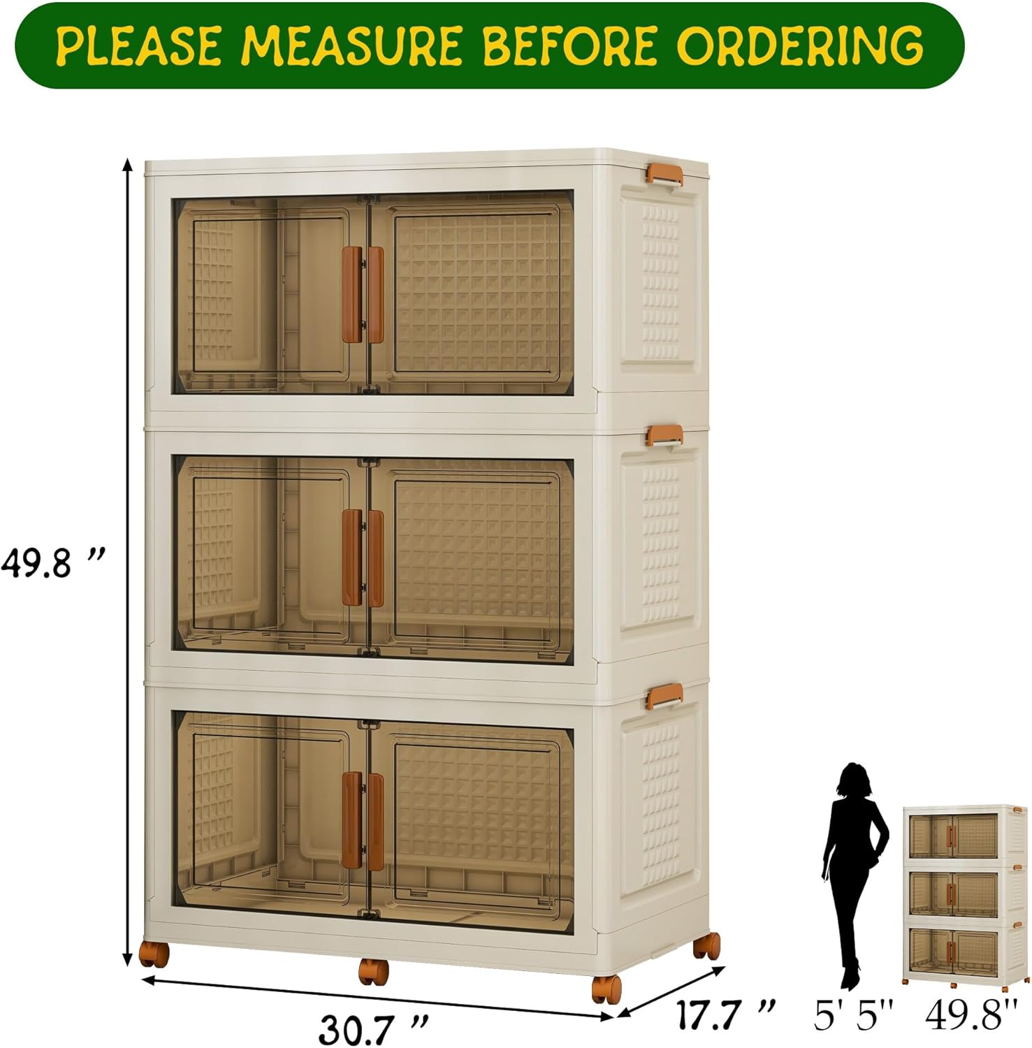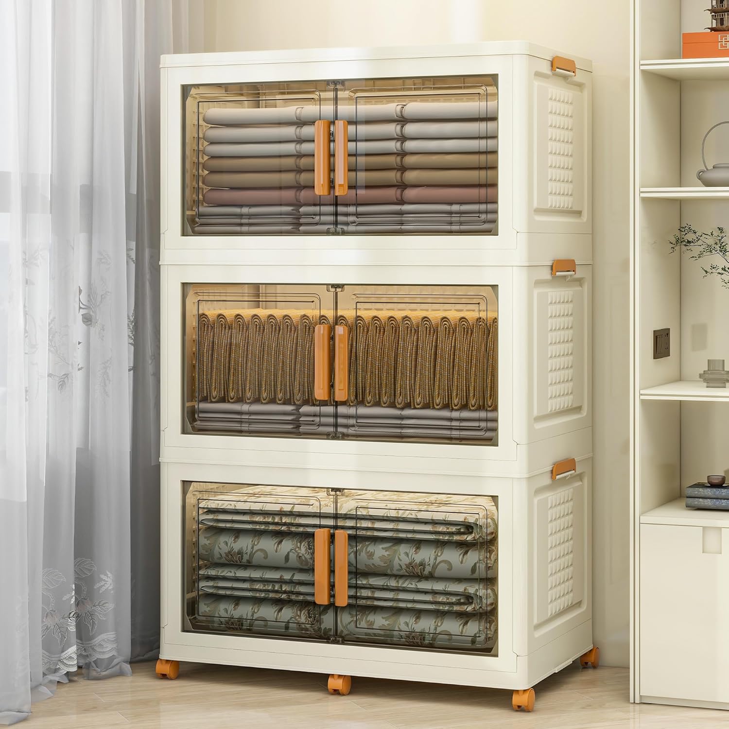 3 Tier Extra Large Stackable Storage Bins with 1 Lid 155 QT/Tier, Collapsible Plastic Box Storage Bin with Wheels, Home Containers Boxes Closet Organizers forLiving Room, Office, Dorm