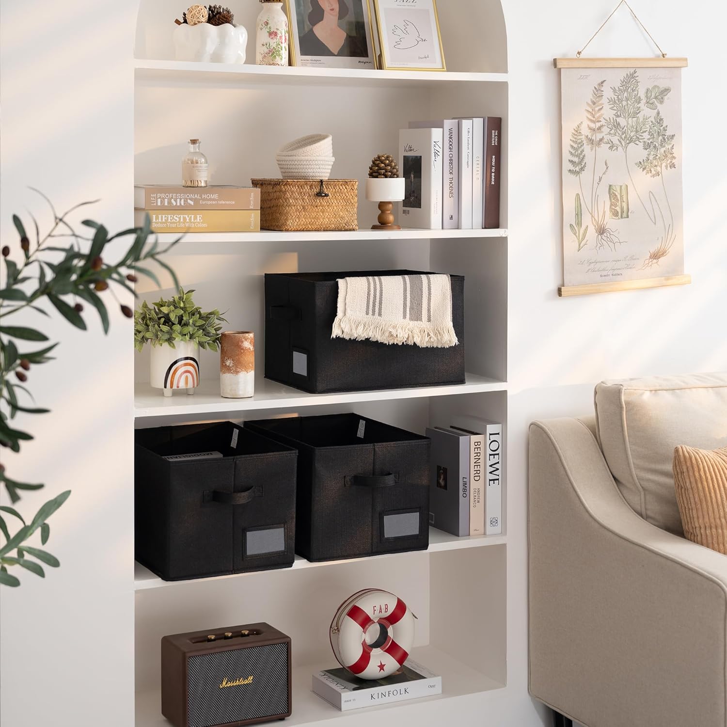 GRANNY SAYS Storage Baskets for Shelves, Fabric Storage Bins for Clothes, Closet Organization Bins, Collapsible Storage Bins with Handles, Decorative Storage Box, Black, Extra Large, 3-Pack
