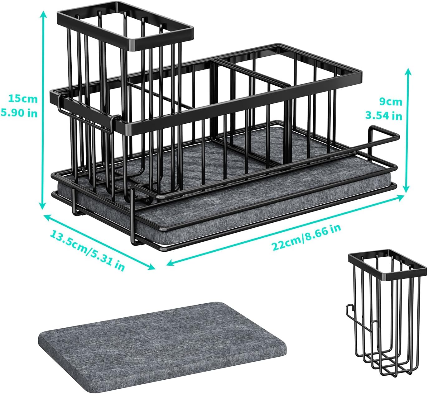 - [Anti-slip Kitchen Caddy]: We know many customers will worry about instability of kitchen sponge holder. Therefore, our kitchen sink accessories added non-slip rubber feet. No need to worry about sliding and stability of this sponge caddy