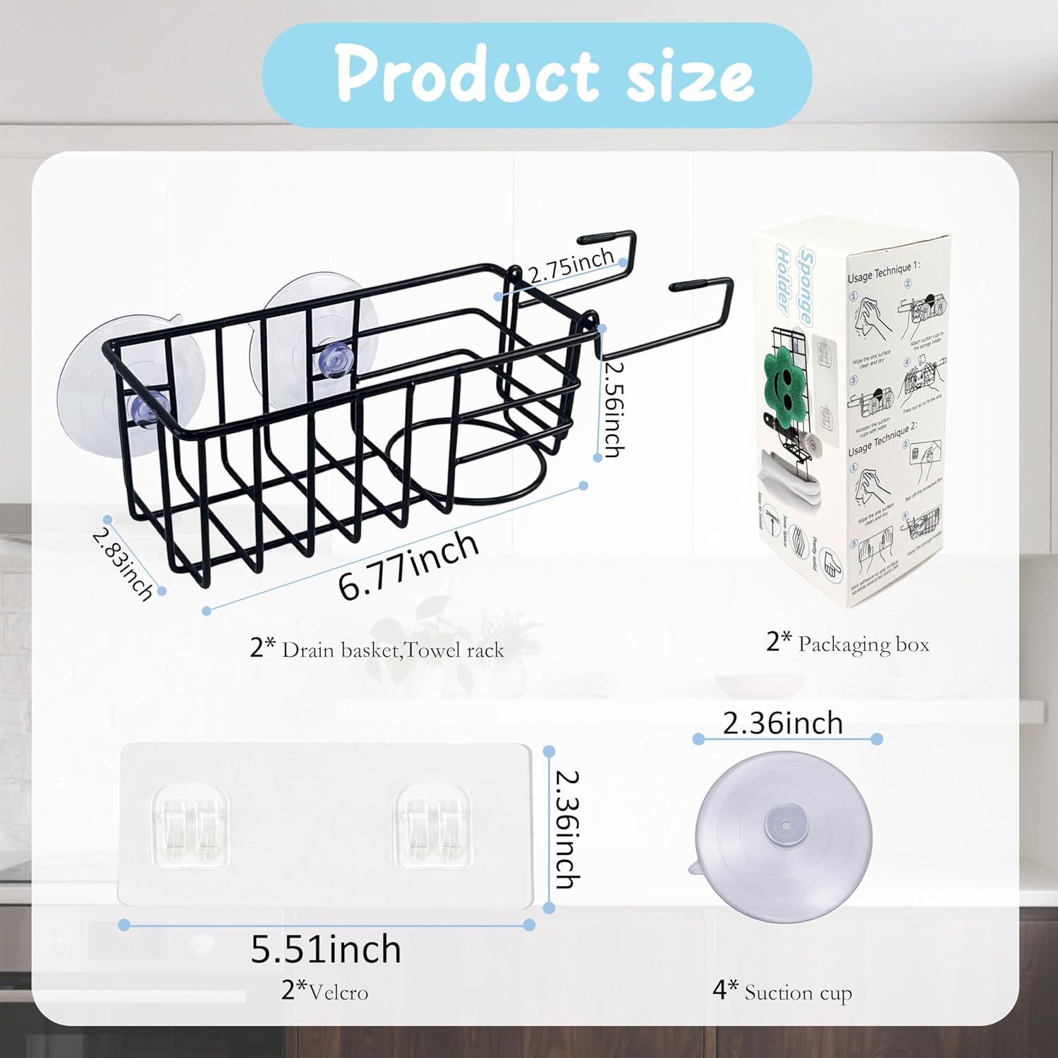 - Special Feature : Rust Resistant, Space Saving, Sponge Holder, Suction Cups & Adhesive Hook, Versatile