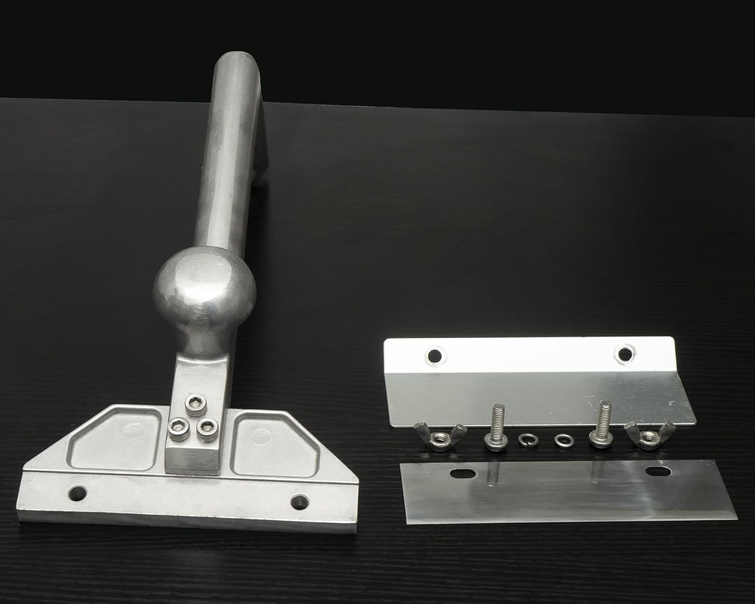 - Spesification & Material - Huoyanshe Grill Scraper is made of heavy-duty cast aluminum construction with stainless steel blades. It is a perfect flat top grill scraper for commercial or individual purposes. Dimesion 16"L*6"W*4"H; It comes with 1x long griddle scraper, 1 blade