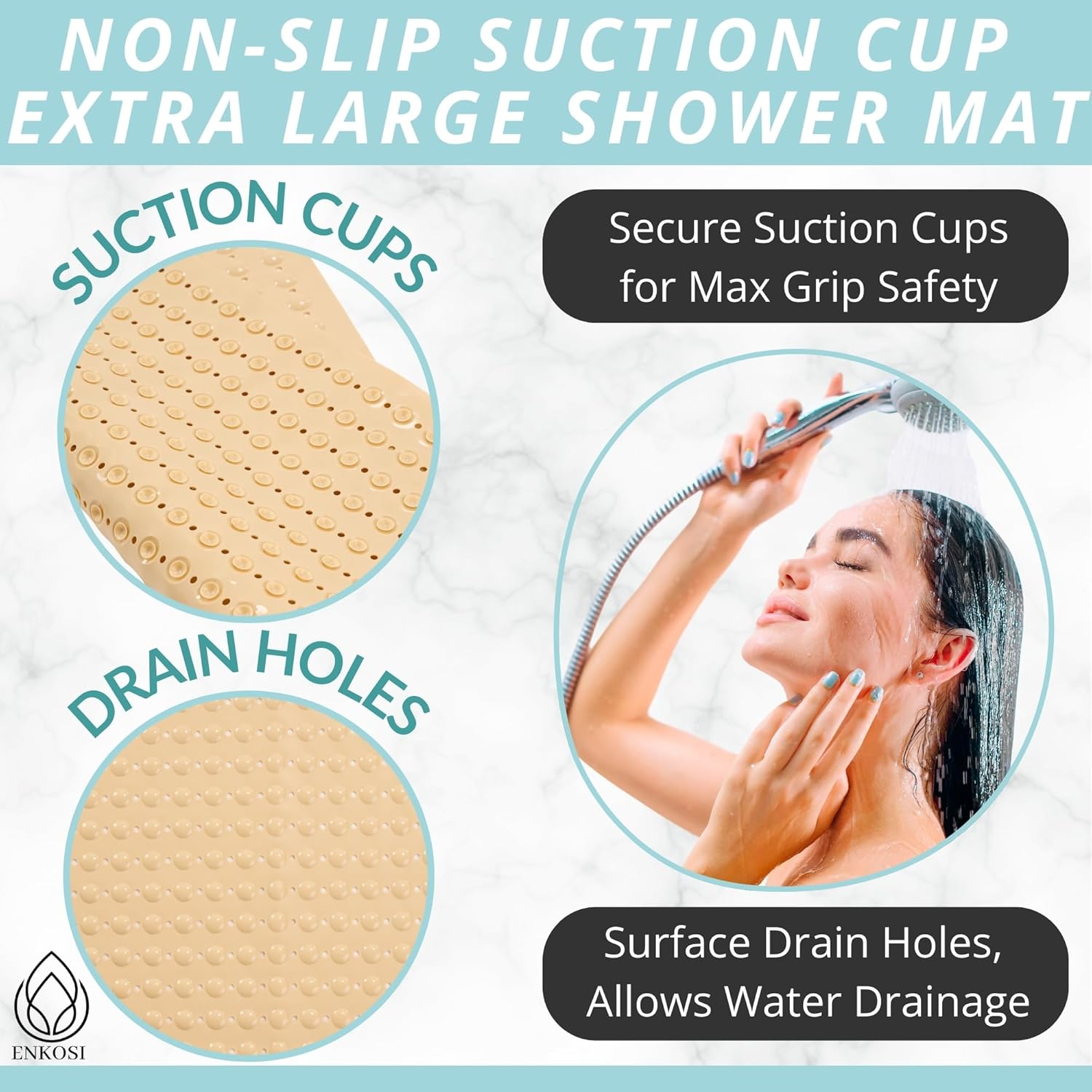 ENKOSI Extra Large Square Non Slip Shower Mat - 31 x 31-inch XL Bathroom Shower Mat - Square Shower Mats for Shower Stall Floors | Secure Suction Cups and Drain Holes (31x31 Beige Opaque)