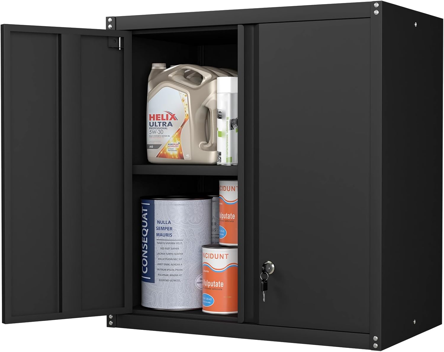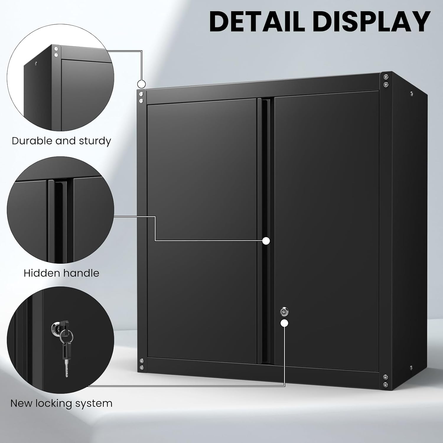 Steel Wall Cabinet, Metal Locking Wall Cabinet, Wall Hanging Metal Cabinet for Garage Tool Storage, Wall Mount Tool Cabinet for Garage, Laundry Room, Pantry, Black