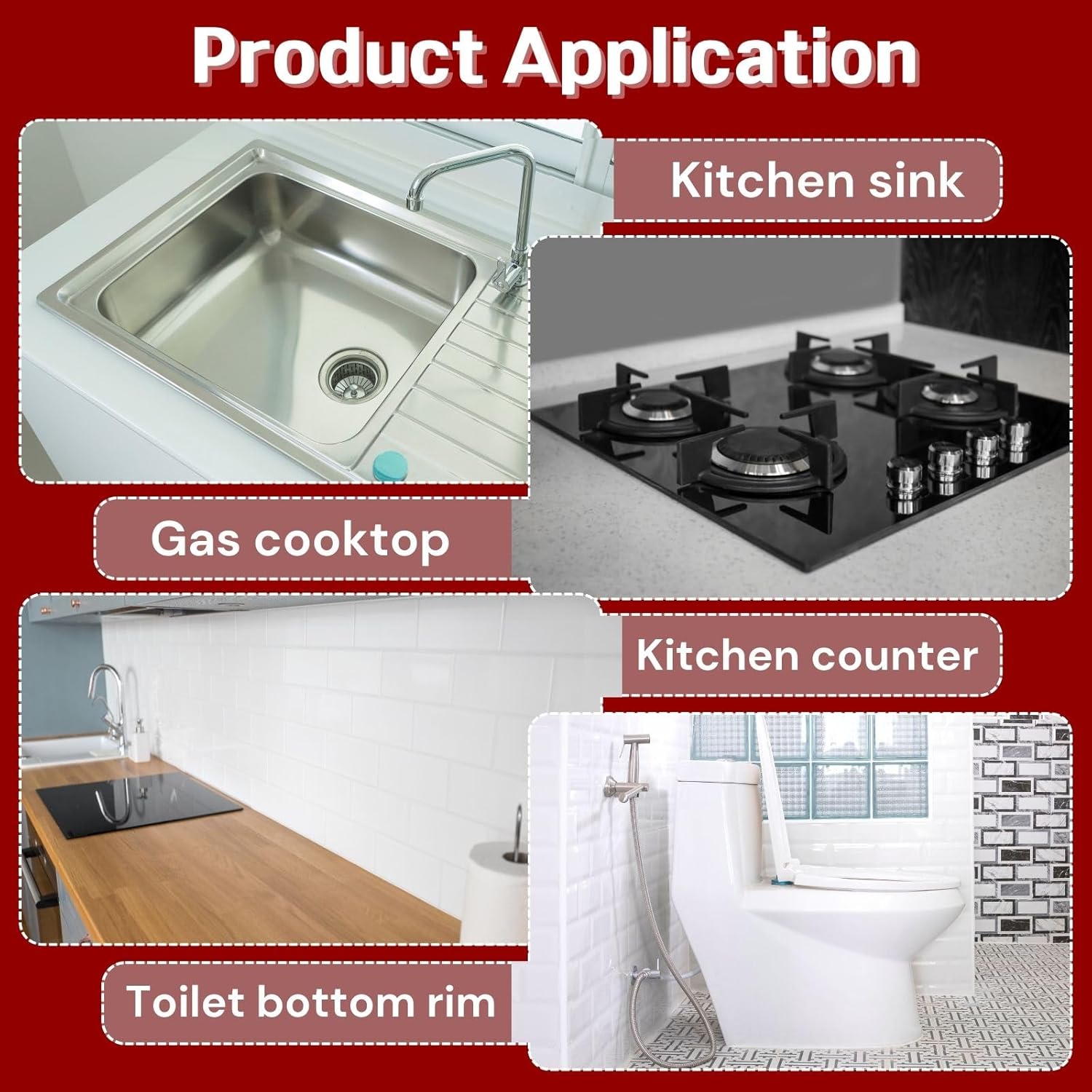 - Wide Applications: The self adhesive caulk strip provides a professional look to the bathroom area and kitchen, keeping your house clean and tidy for a long time. Adhesive tapes is ideal for tubs, toilets, corners, bathrooms, kitchen countertops, basins, sinks, gas cooktops, marble countertops as bathtub caulk tape, show tape, clear bathroom caulk. Whether it is glass surface, wood surface, metal surface, plastic surface, tile surface, marble surface, our tape can be used