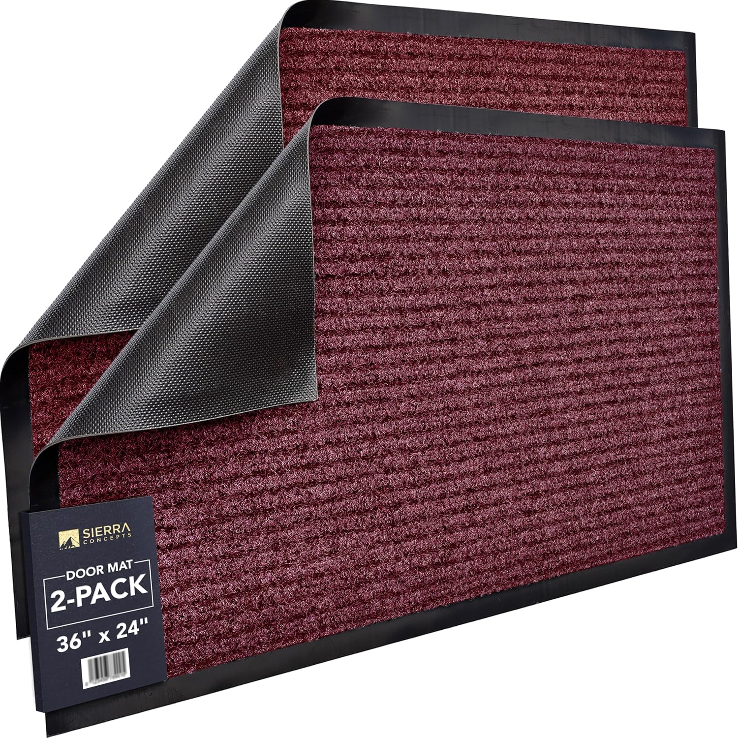 Sierra Concepts Front Door Mat Large Welcome Floor Mats - Entryway Indoor Outdoor Entrance Doormat, Patio, Porch, Muddy Dog Shoe, Inside Outside Low Profile 36x24in, 2-Pack Red