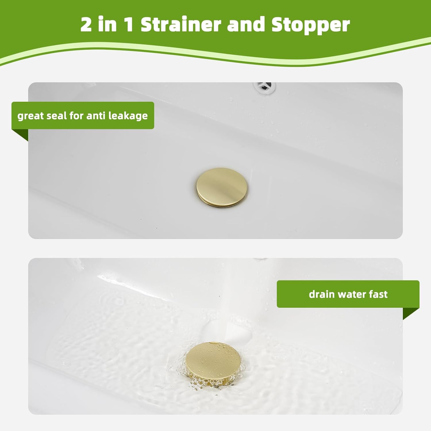 - 2-in-1 Use: This sink drainer combines both water seal and anti-clogging functions, effectively solves the bathroom sink's plumbing problem, and also combats sink inside odor; Big hole design provides powerful drain speed and can catch hair/waste around it