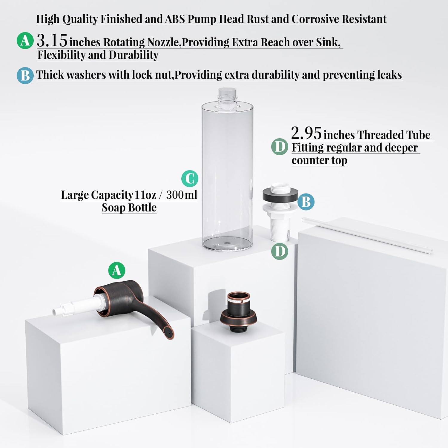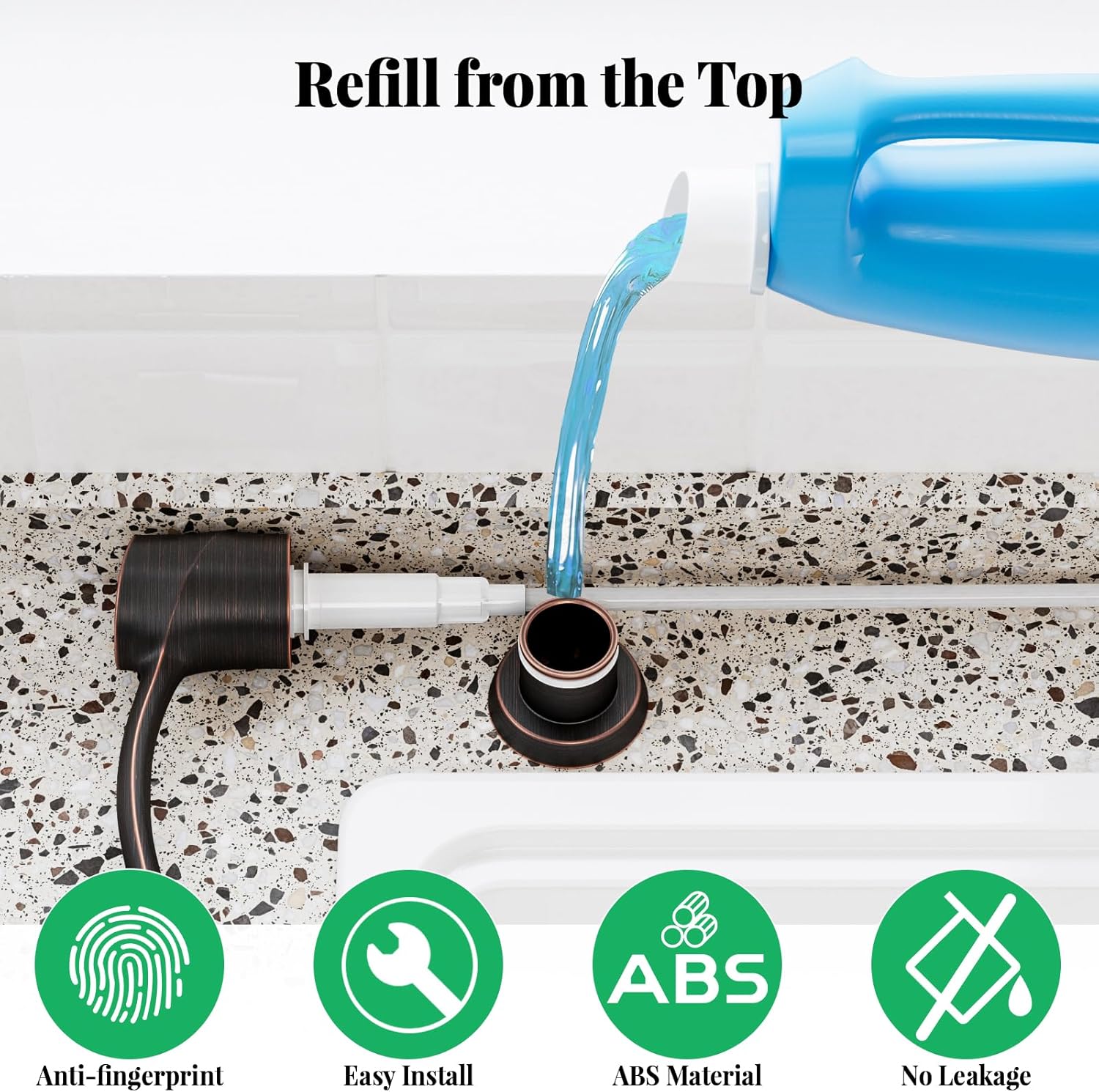 SAMODRA Kitchen Sink Soap Dispenser Oil Rubbed Bronze Built-in Soap Dispenser,ABS Dispenser Pump Head with 11 oz PET Bottle, Refill from Top