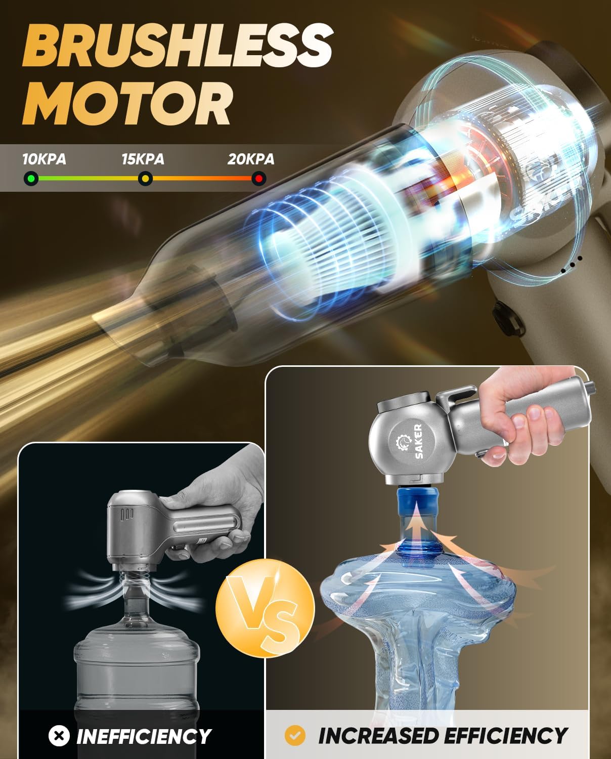 - ăPowerful Brushless MotorăThe Saker car vacuum portable cordless adopts an upgraded high-speed motor with powerful performance, which can achieve three levels of suction adjustment, and can provide 20000pa suction in the maximum mode. Can help you remove dust, debris, pet hair, and other large objects from your home, office, or car within seconds.