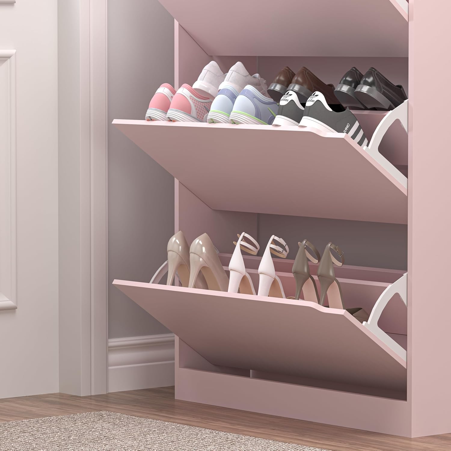 - 【Shoe Cabinet for Entryway】:The hidden shoe storage cabinet with 3 flip Drawers, pink makes it a neat and beautiful finish and looks great,Perfect for placing in the entryway, hallway, living room, or porch, space saving.