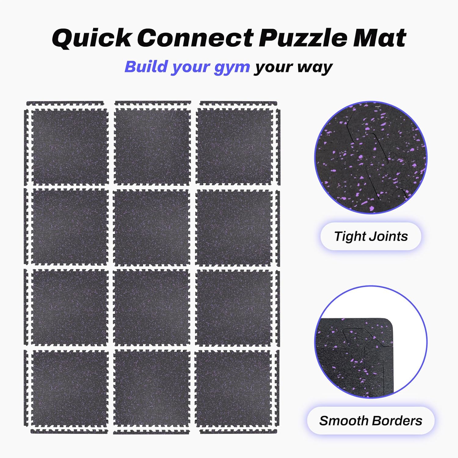 - [Easy to Assemble and Detach]: 12 tiles (24" x 24" x 0.56" each), covers 48 sq ft (8 × 6 ft). Upgraded larger interlocking locks provide a secure fit, preventing any separation during use, ensuring you can work out without concerns of shifting. Simple assembly and detachment make it effortless to set up your home gym.