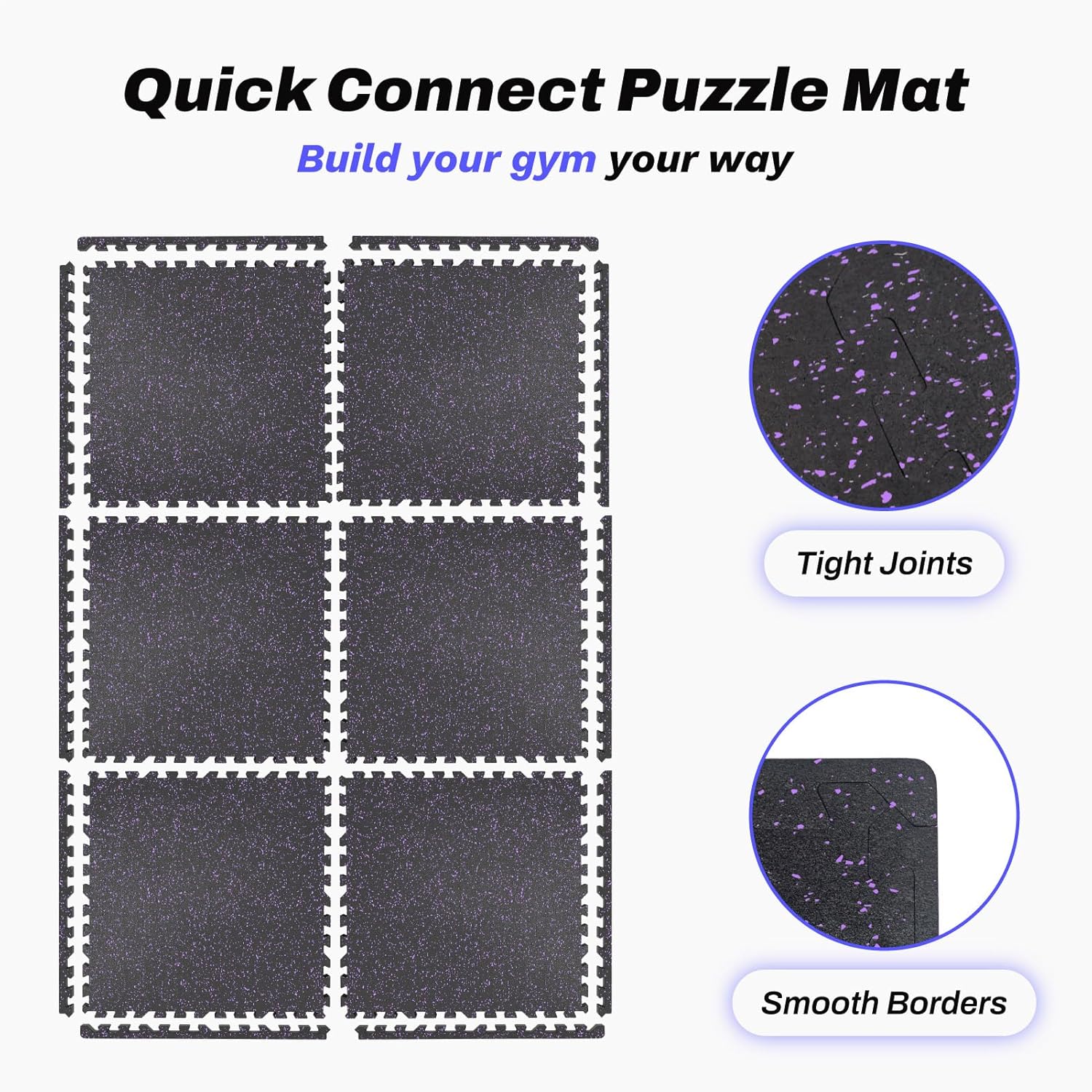 - [Easy to Assemble and Detach]: 6 tiles (24" x 24" x 0.56" each), covers 24 sq ft (6 × 4 ft). Upgraded larger interlocking locks provide a secure fit, preventing any separation during use, ensuring you can work out without concerns of shifting. Simple assembly and detachment make it effortless to set up your home gym.