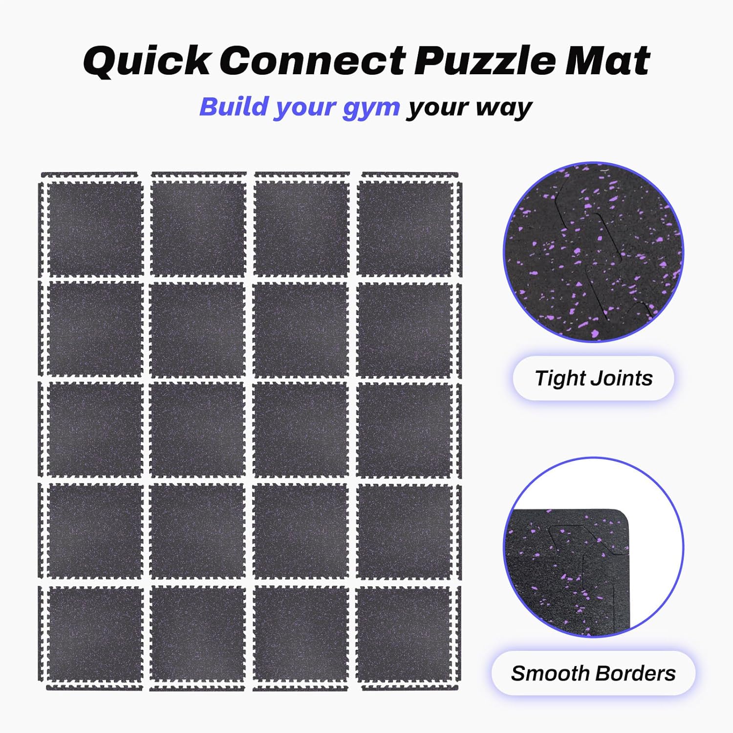- [Easy to Assemble and Detach]: 24 tiles (24" x 24" x 0.56" each), covers 96 sq ft (8 × 12 ft). Upgraded larger interlocking locks provide a secure fit, preventing any separation during use, ensuring you can work out without concerns of shifting. Simple assembly and detachment make it effortless to set up your home gym.