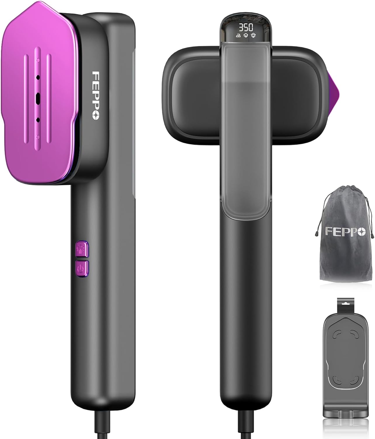 FEPPO Travel Steamer for Clothes, 110-240V Dual Voltage Portable Steamer & Iron 2 in 1, Fast Heat Up, 1100W Powerful Garment Steamer, Large Ceramic Heat Panel for Home & Global & Europe Traveling