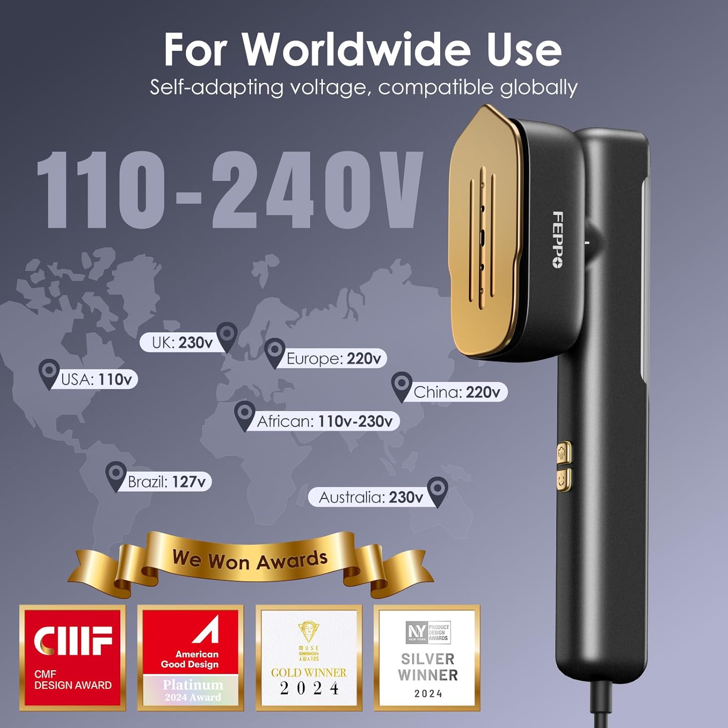 - ă110V-240V Dual Voltage Steamer for Global Travelă Experience hassle-free ironing worldwide with our clothes steamer featuring advanced 110V-240V dual voltage technology. No adapters neede, Plug and Play, Easy to use. This travel steamer for clothes is your wrinkle-free companion for international trips, business travels, or daily use. Whether you're in Europe, the U.S., or Asia, you no longer need to worry about the ironing machine can not be used due to different voltages.