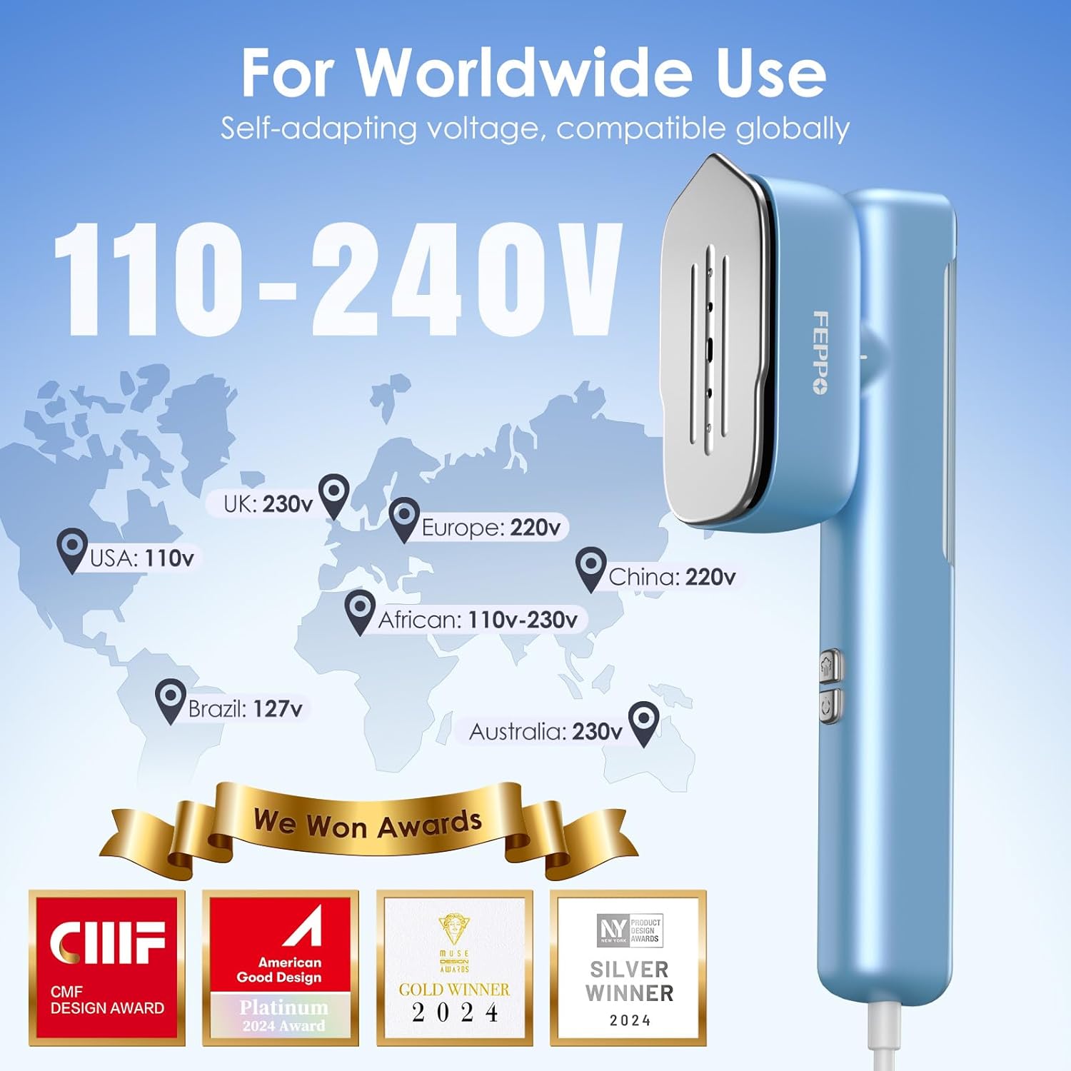 - 【110V-240V Dual Voltage Steamer for Global Travel】 Experience hassle-free ironing worldwide with our clothes steamer featuring advanced 110V-240V dual voltage technology. No adapters neede, Plug and Play, Easy to use. This travel steamer for clothes is your wrinkle-free companion for international trips, business travels, or daily use. Whether you're in Europe, the U.S., or Asia, you no longer need to worry about the ironing machine can not be used due to different voltages.