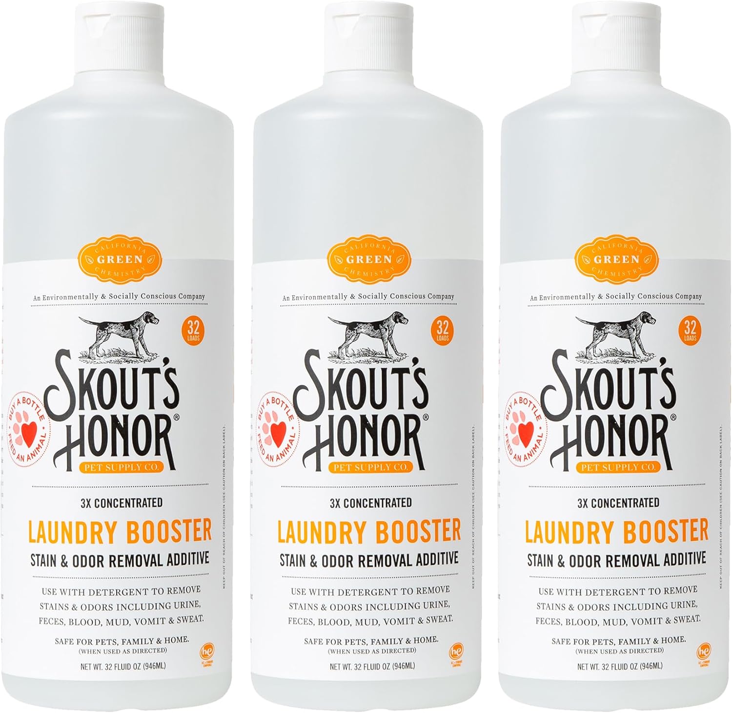 Skout's Honor Laundry Booster Stain & Odor Removal Additive - Plant-Powered Formula for Pet Bedding, Clothing, and Washable Pee Pads - Eco-Friendly & Cruelty-Free, 32 oz - 3 Pack