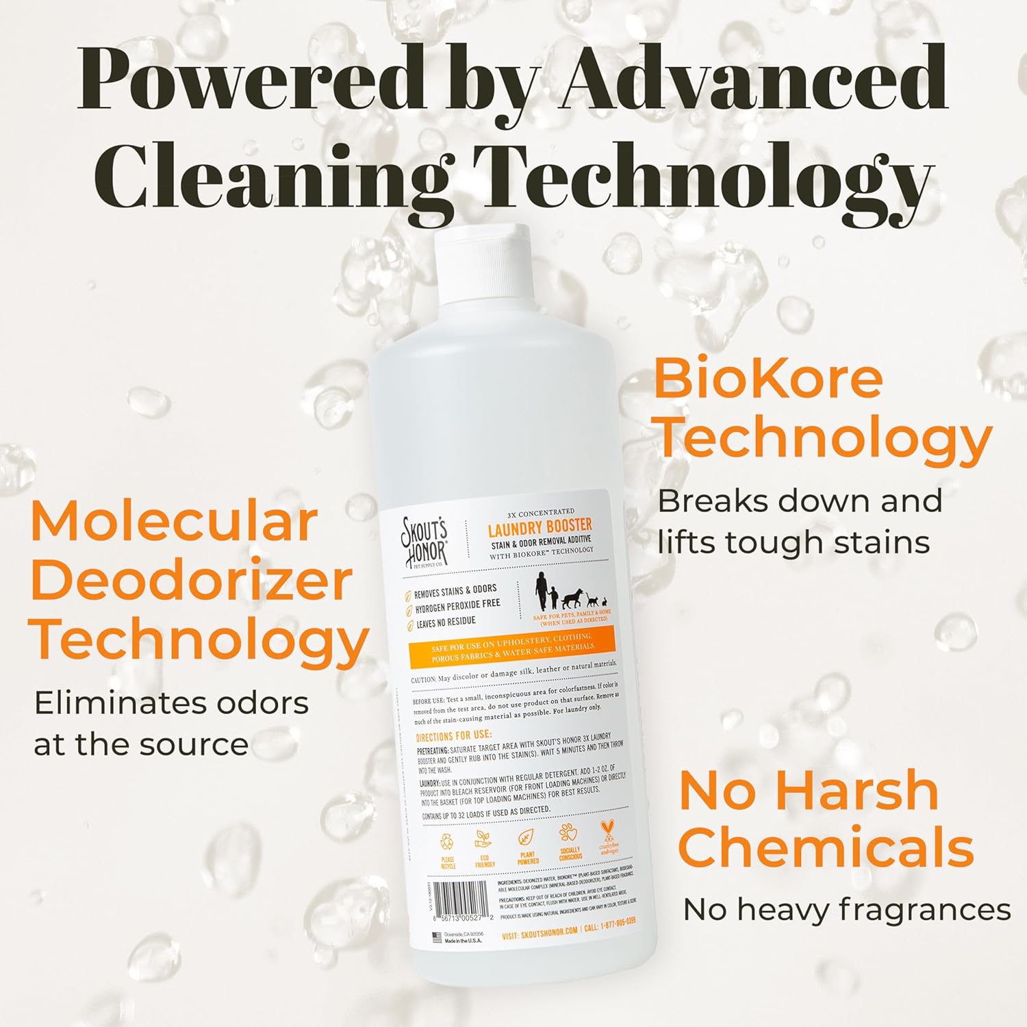 - Professional Strength - Skout's Honor Laundry Booster offers professional-grade cleaning power, providing deep cleaning to tackle even the toughest pet stains and odors. -Fragrance Free