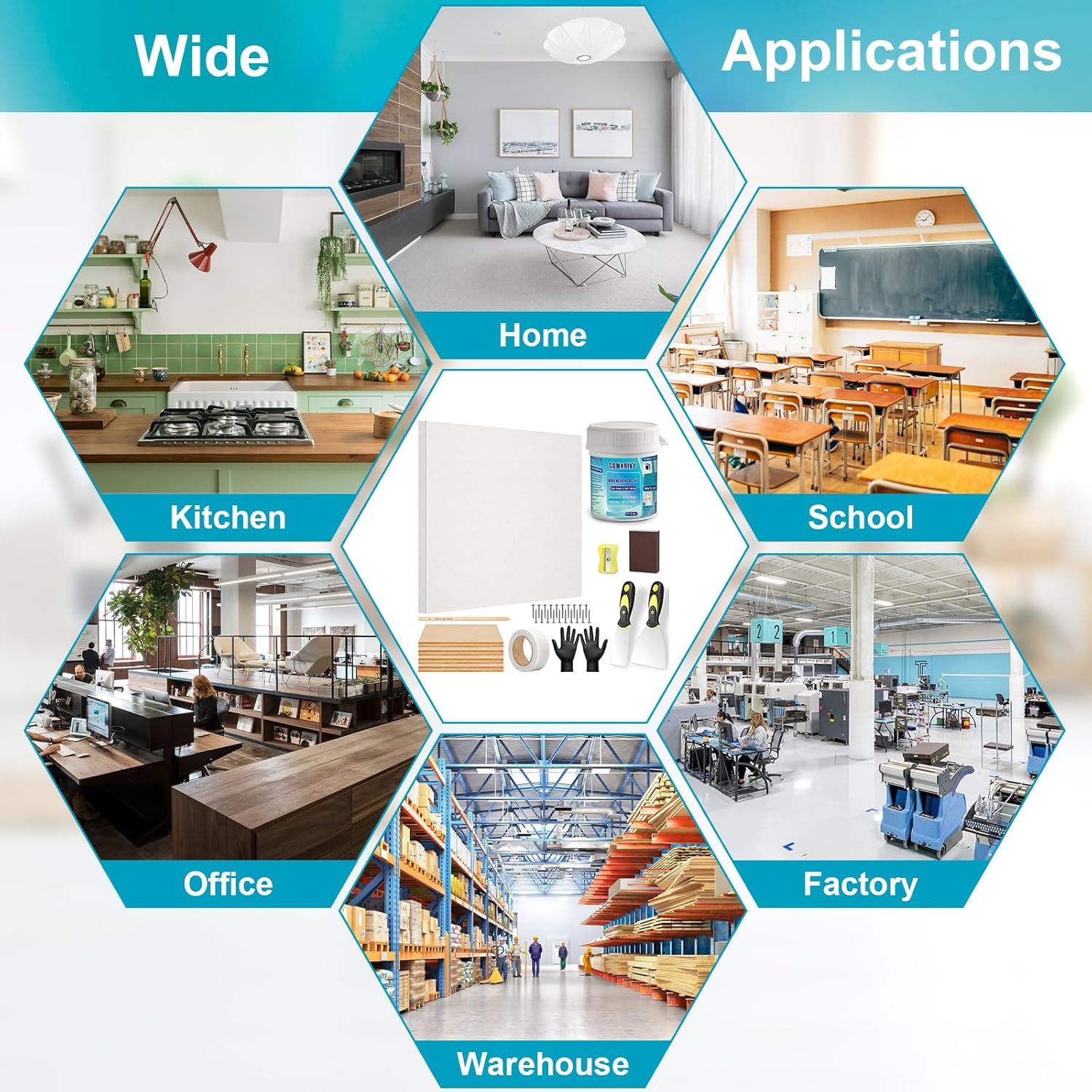 - Complete Dry Wall Patch Kit for Large Holes Fill: Our Sheetrock repair kit includes everything you need for a quick and easy wall surface repair. You will receive 1 pcs 12”x12" Drywall Repair Panel, 8.8oz Wall Repair Agent, 4 pcs 5-Ply basswood board, 1 pcs mesh tape, 1 pcs brown sponge sand block, 1 pcs 1.5 inch putty knife, 1 Pcs 5 inch putty knife, 20 Pcs cross countersunk self-tapping screws (M4*25), 1 Pcs pencil, 1 Pcs sharpener, 1 pair of L-size black rubber gloves and1 Pcs manual