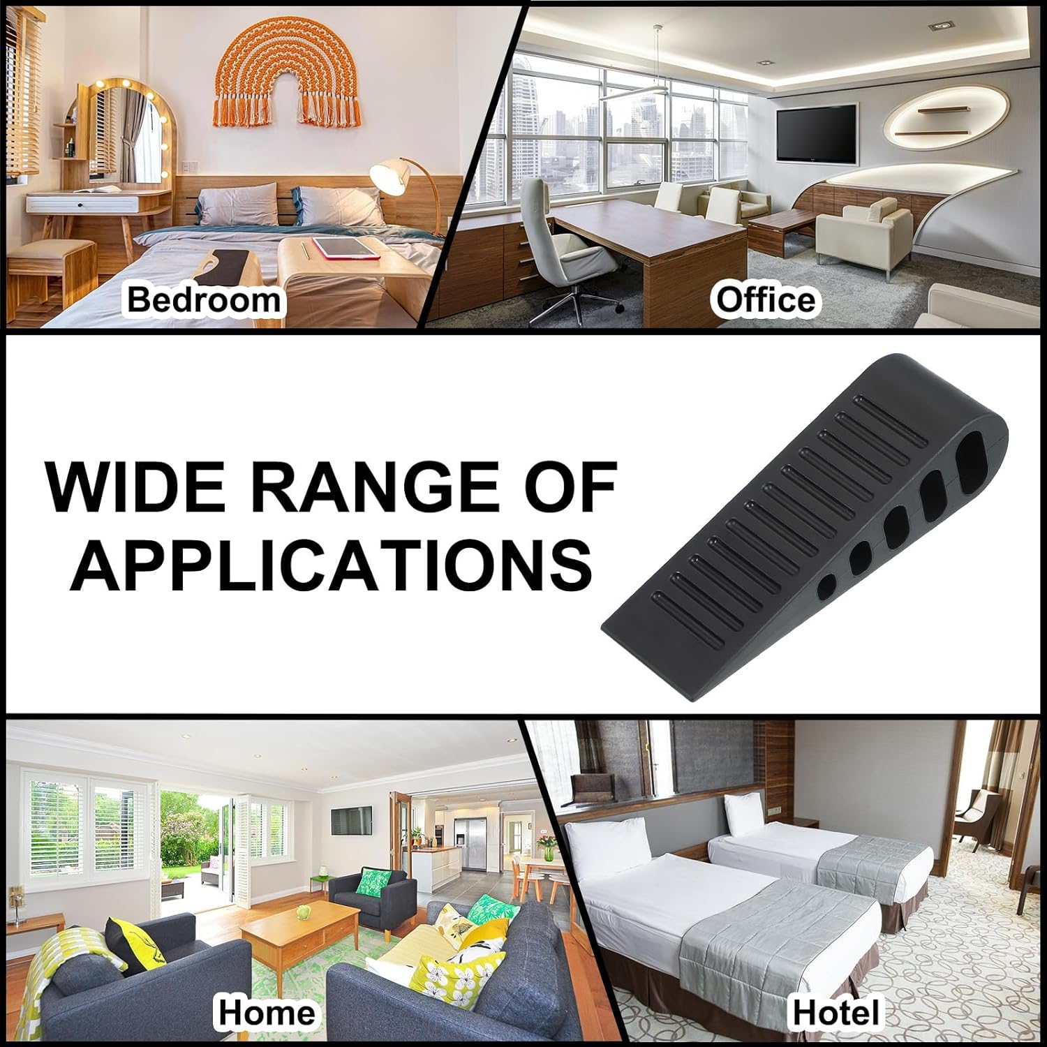 - Sturdy Rubber: The door stop wedges are crafted from TPR material, ensuring reliability, reusability, and non-slip. Suppleness structure with scientific arched holes, effectively preventing doors from closing due to a breeze and helping prevent cats and dogs from accidentally pushing the door closed.