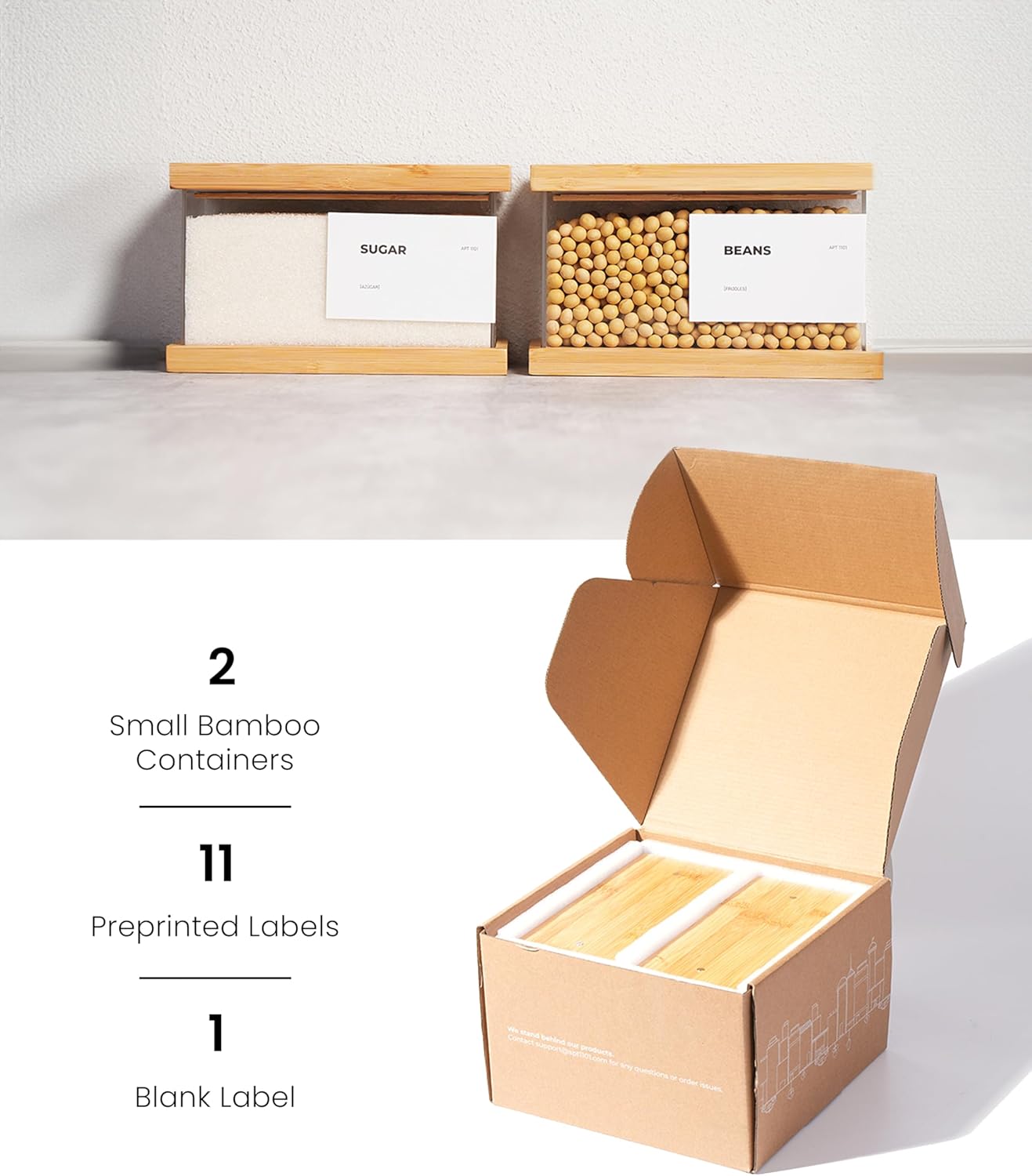 Bamboo Food Dispenser | Kitchen Organizers and Storage | Airtight Pantry Organizers and Storage Container | Cereal, Rice, Flour, Snack Storage (2, Small)