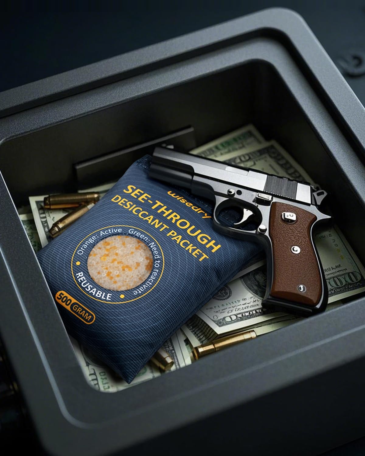wisedry 4 x 500 Gram See-Through Silica Gel Packets, Color-Indicating Desiccant Packs for Storage, Reusable Safe Dehumidifier, Heat Resistant Dehumidifier Bags