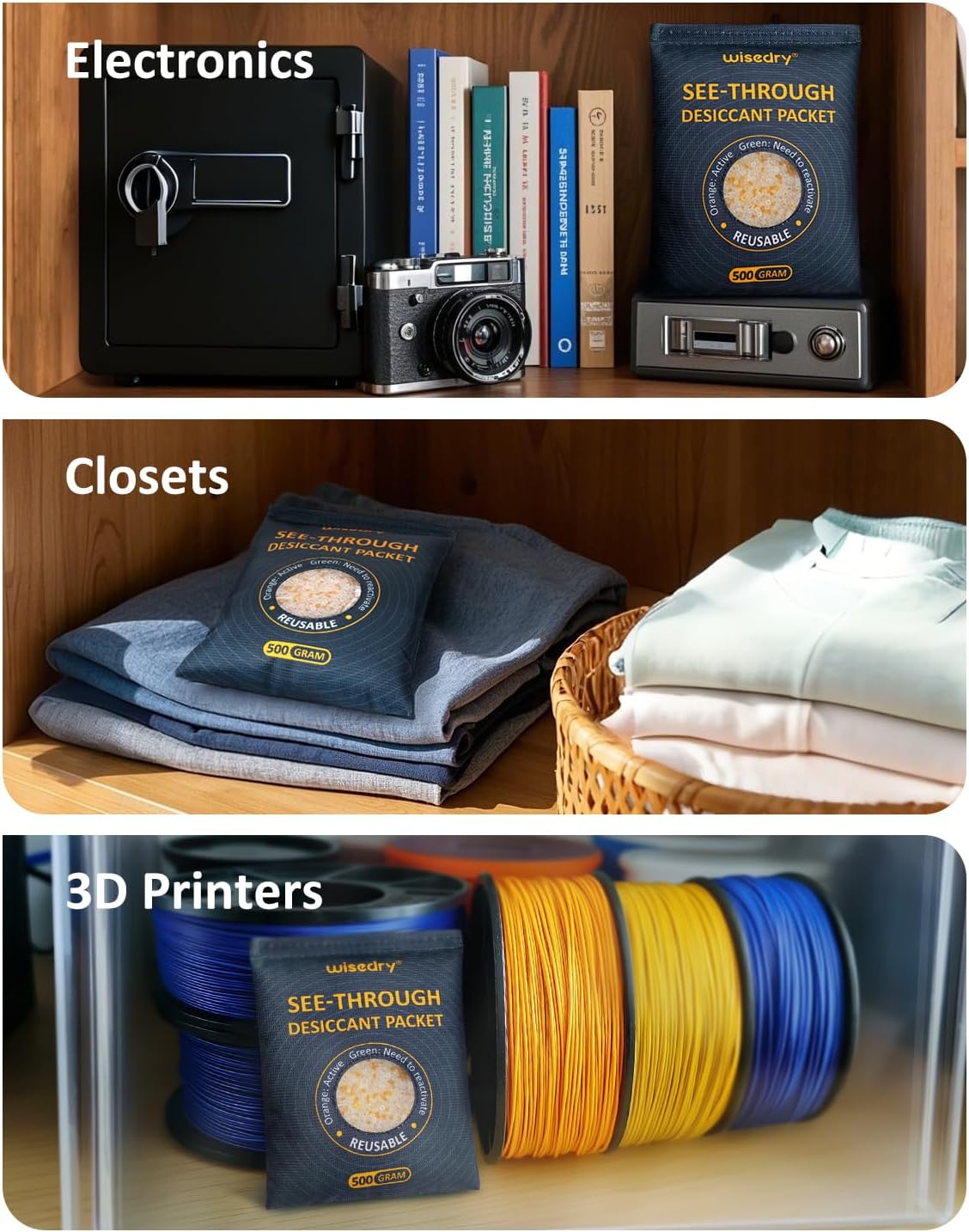 - ✅ [ Long-Lasting Dehumidification ] The 500-gram large capacity needs no frequent replacement. These moisture absorbers can keep car interiors, gun safes, 3D printers, collectibles, camera bags, toolboxes, garages, basements, and other humidity-sensitive spaces dry for months (depending on the space size and humidity)