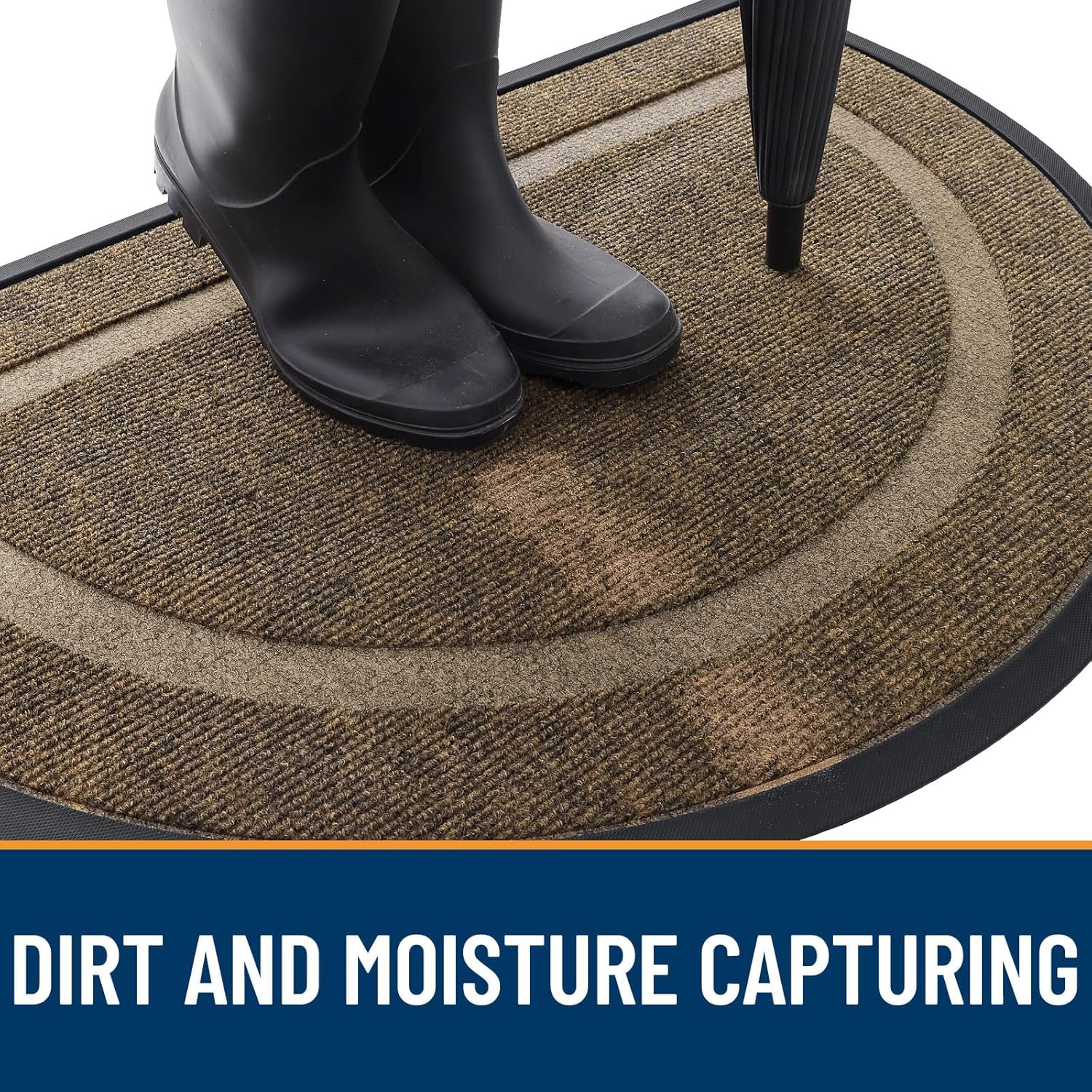 OLANLY Half Circle Door Mat Indoor Outdoor Entrance Welcome, Waterproof All-Season, All-Weather Doormat, Sturdy Natural Rubber, Low Profile, Easy Clean Patio Porch Entryway Mat, 71x47, Brown