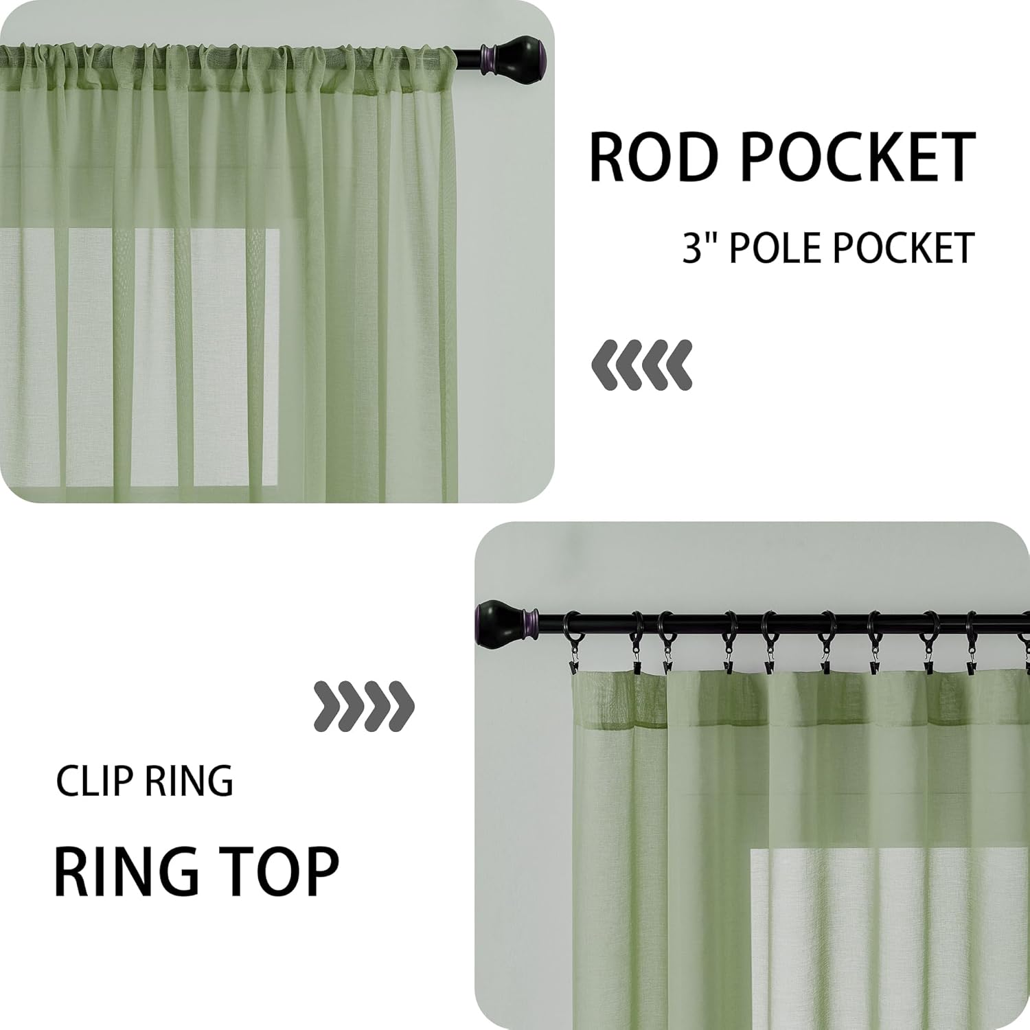 - Light Filtering: The linen look sage green door sheer curtain can allow the right amount of natural light through to bring your room a hazy and softer vision, keep you away from someone’s glance from outside and provide you some privacy.