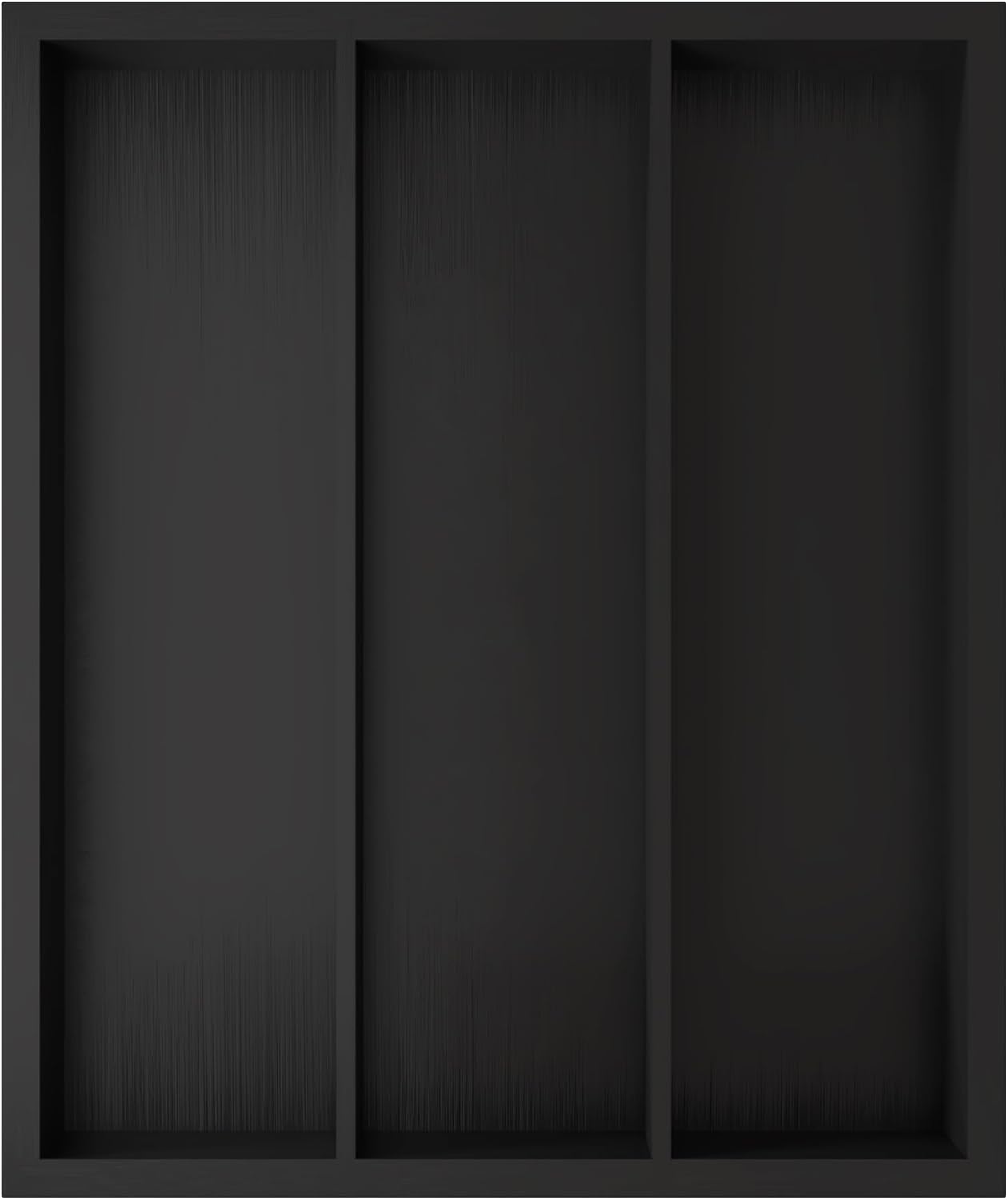 Bamboo Utensil Drawer Organizer, Silverware Tray Organizer, Kitchen Drawer Organizer for Flatware Cutlery (Black, 3 Slots)