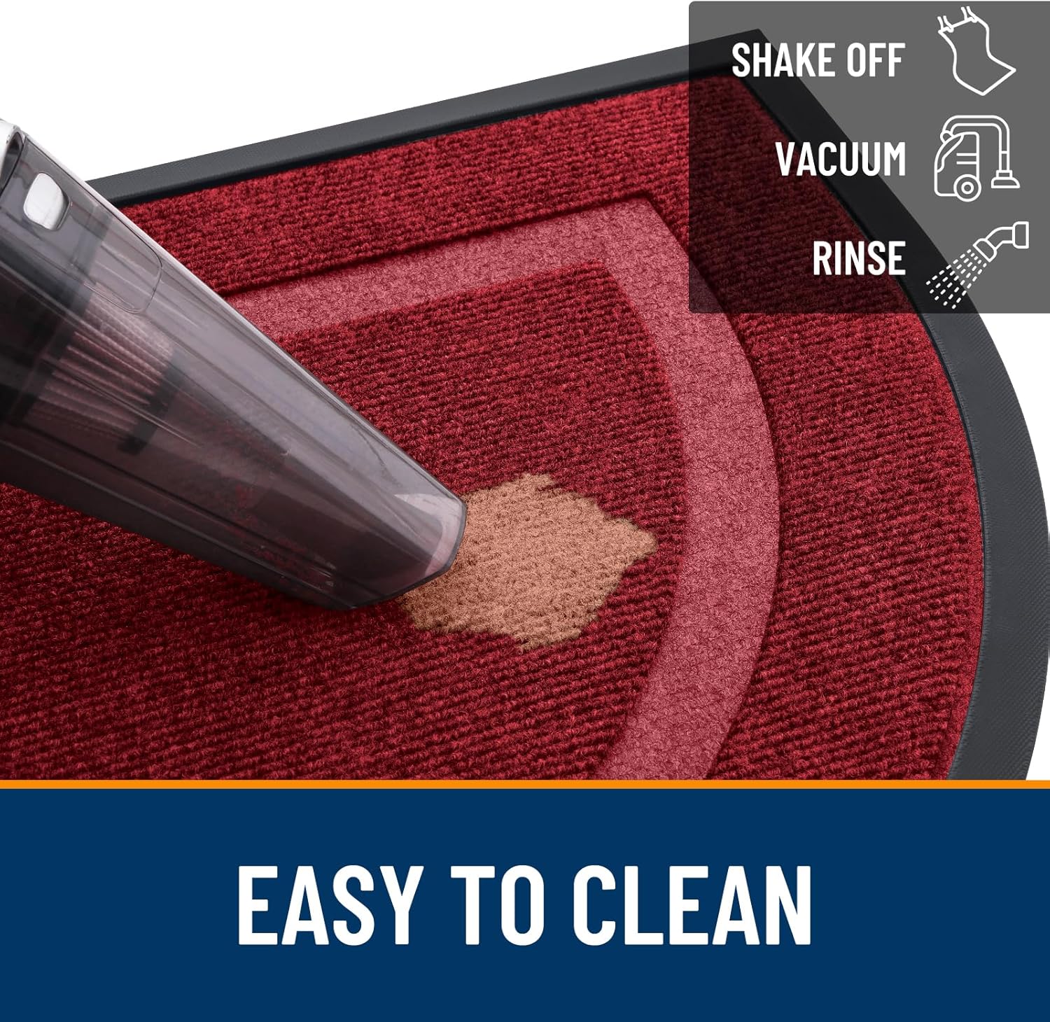 OLANLY Half Circle Door Mat Indoor Outdoor Entrance Welcome, Waterproof All-Season, All-Weather Doormat, Sturdy Natural Rubber, Low Profile, Easy Clean Patio Porch Entryway Mat, 47x23, Wine Red