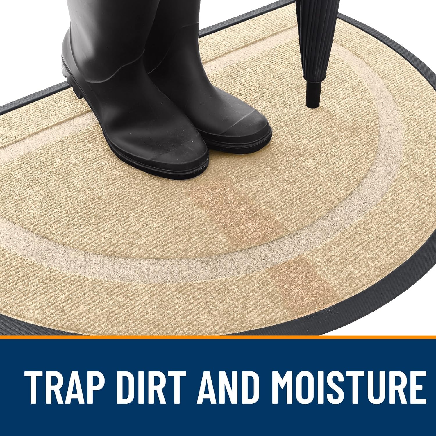 OLANLY Half Circle Door Mat Indoor Outdoor Entrance Welcome, Waterproof All-Season, All-Weather Doormat, Sturdy Natural Rubber, Low Profile, Easy Clean Patio Porch Entryway Mat, 47x23, Beige
