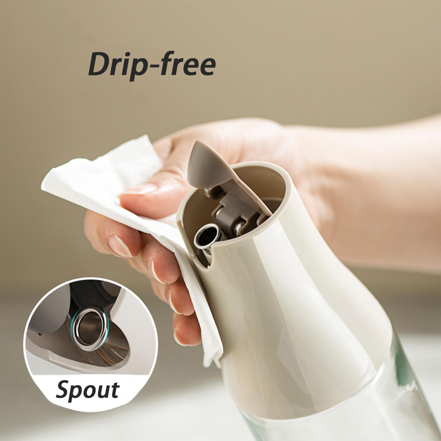 2 Pack Oil Dispenser for Kitchen, Auto Flip Non-Drip Design, Leak Proof, Oil Vinegar Dispenser Set, Glass Oil Bottle with 500ml Capacity, Warm Grey (2)