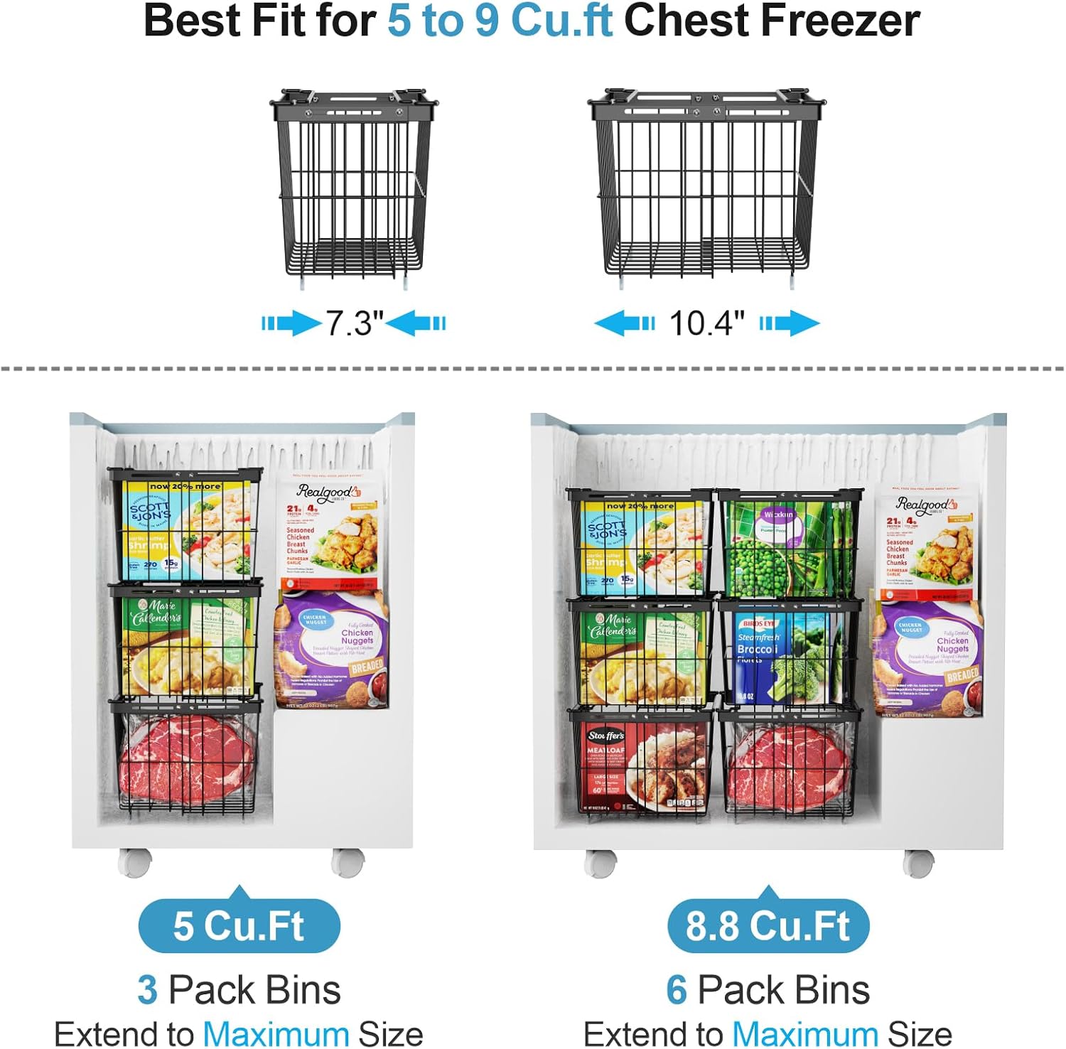- [Heavy-duty storage without bending]: The bins for chest freezer organization are built with 20% thicker wire than standard freezer baskets for chest freezer organization; Holds bulky frozen foods securely while transparent sides let you spot items instantly