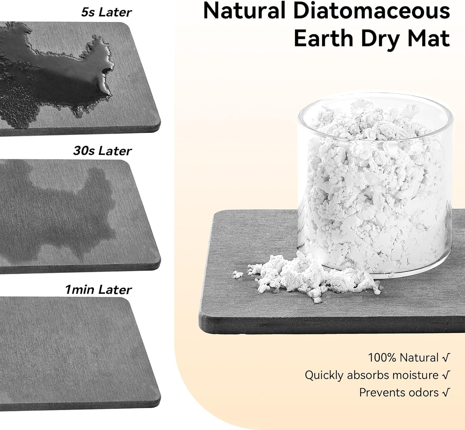 - ăNatural BbsorbencyăThe bottom is made of natural diatomaceous earth and plant fibers, and the small holes in the diatomaceous earth give it amazing water absorption. They can absorb moisture and dry out in a few minutes