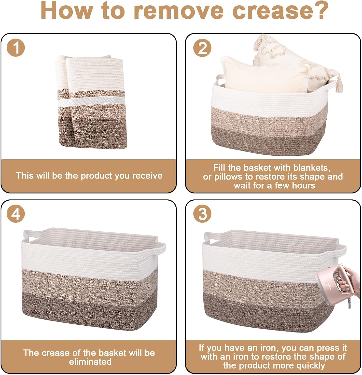 - Double reinforced Handles:We use the highest grade cotton rope as raw material and all the stitches are distribution and fine,which makes the baskets better wear resistance and durability to be used for many years.In addition, the handle of this large basket has a unique design and is wrapped around with thick double-layer suture rope to prevent tearing and keep its shape and never fall off