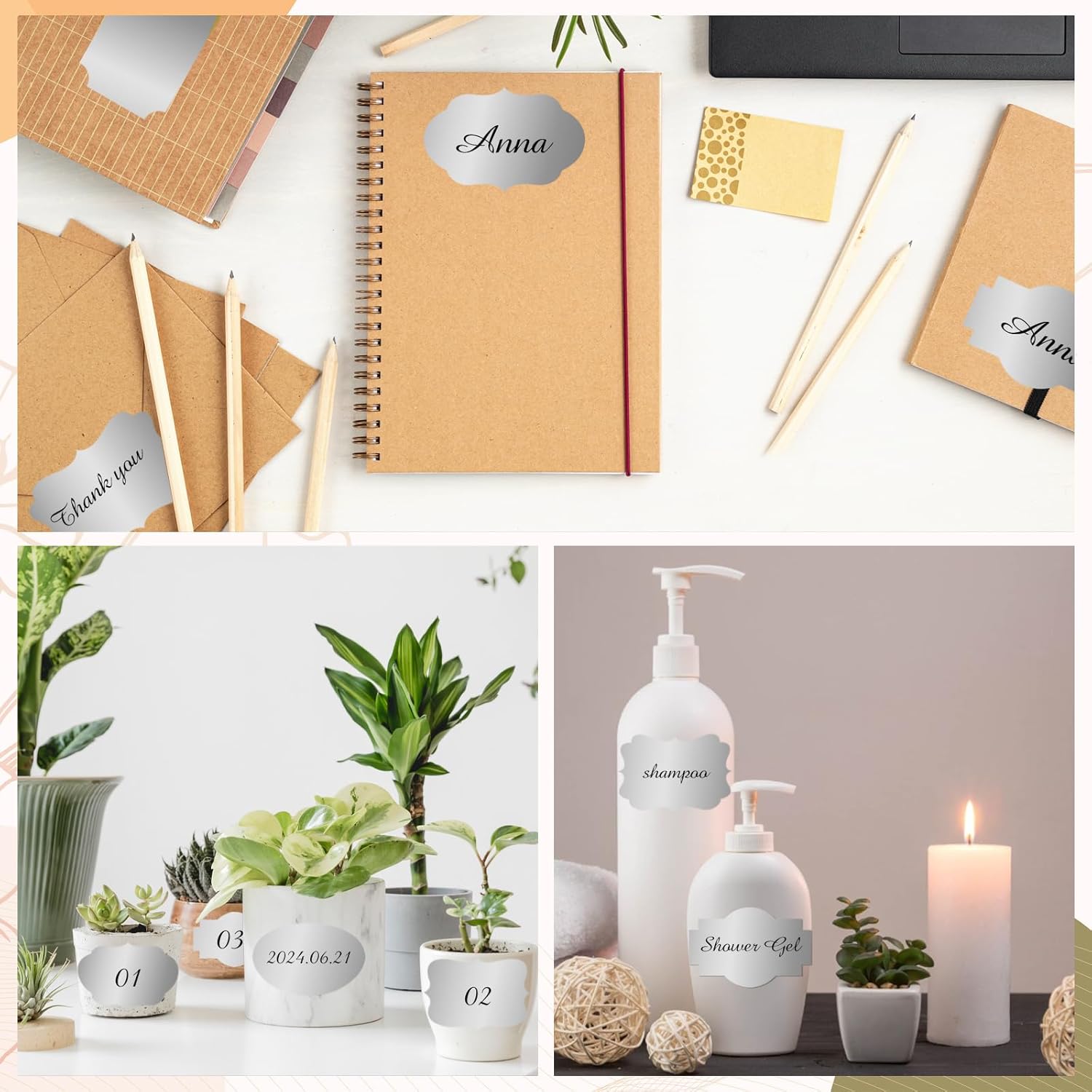 Silver Labels Stickers, 250 PCS 3" x 2" Fancy Shape Stickers Labels for Storage Box or Food Jars Holiday Present Stickers Christmas Gift Tags Stickers