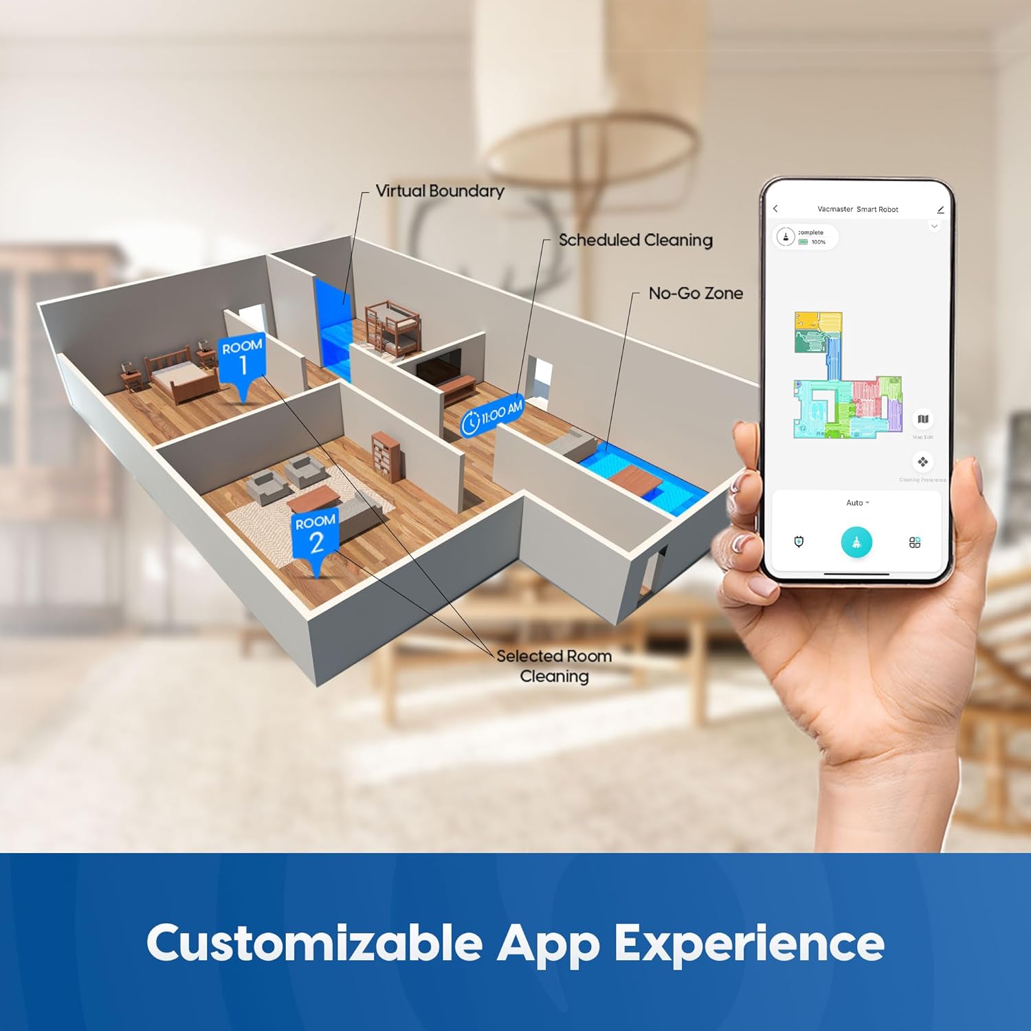 - Customizable App Experience: Tailor your cleaning with 6 modes and 4 suction levels. Set virtual boundaries, no-go zones, and more directly through the app