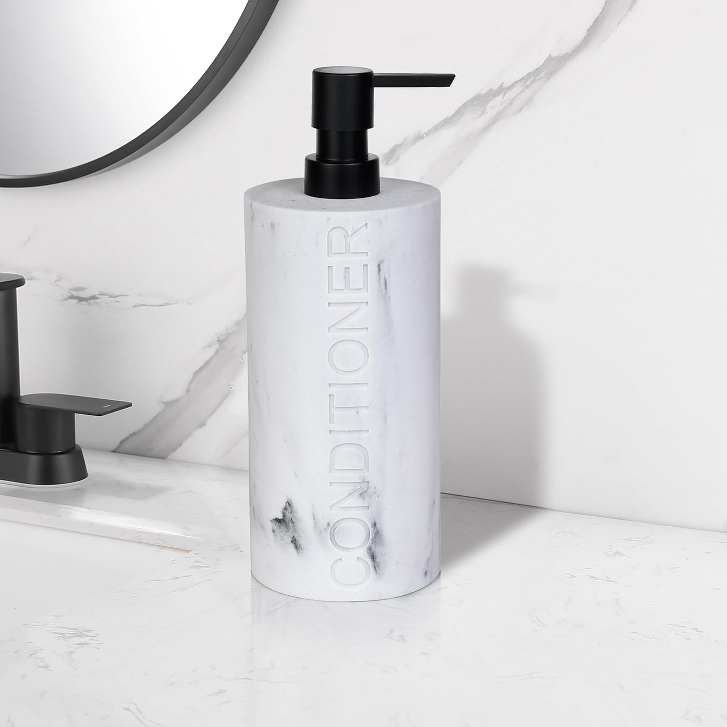 - Sophisticated Embossed Detail: The engraved "CONDITIONER" text ensures easy identification, while the polished marble-like finish adds a touch of opulence to any setting. A perfect blend of beauty and practicality.