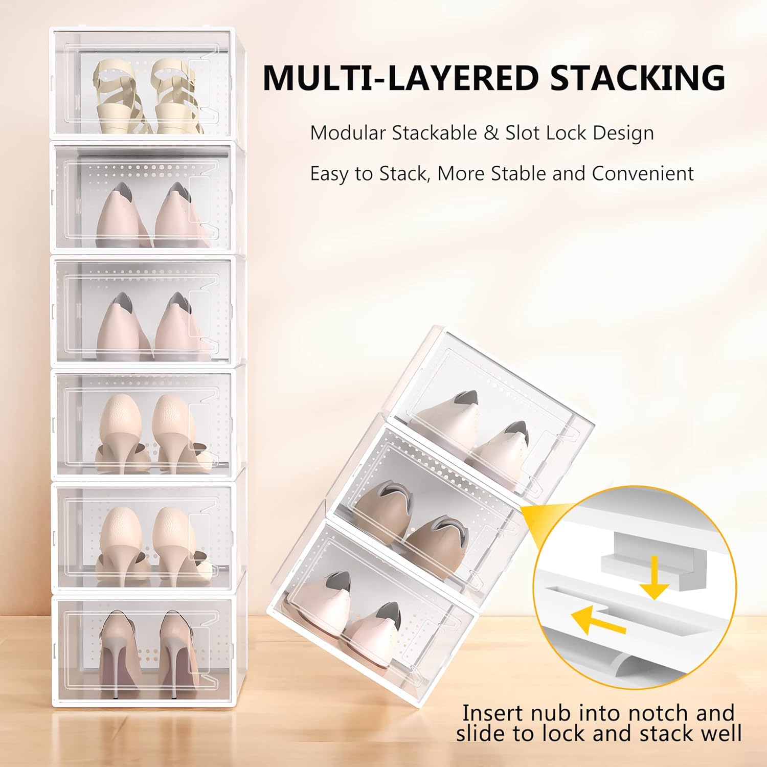 - Clear Shoe Manager: Clear shoe boxes stackable helps you search for your shoes quickly and efficiently, and ventilation design allows air circulation and odor prevention. Limited space saving fit for in the closet, wardrobe, hallway, entryway, bedroom, under bed and so on.