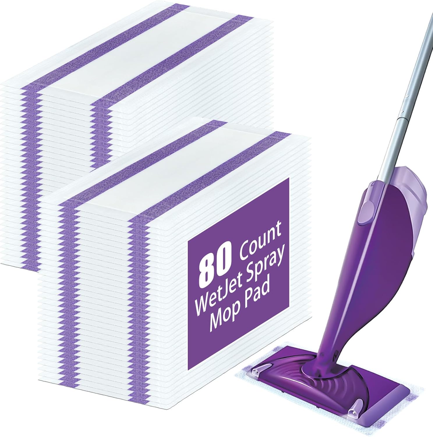 - 【 Suitable for Swiffer Wet Jet Spray Mop 】 These mop pads are designed specifically for Swiffer WetJet mops and any Model of Velcro Mop come in 80 pieces,11.8"x 5.9", perfect fit for Swiffer Wet Jet spray mop.
