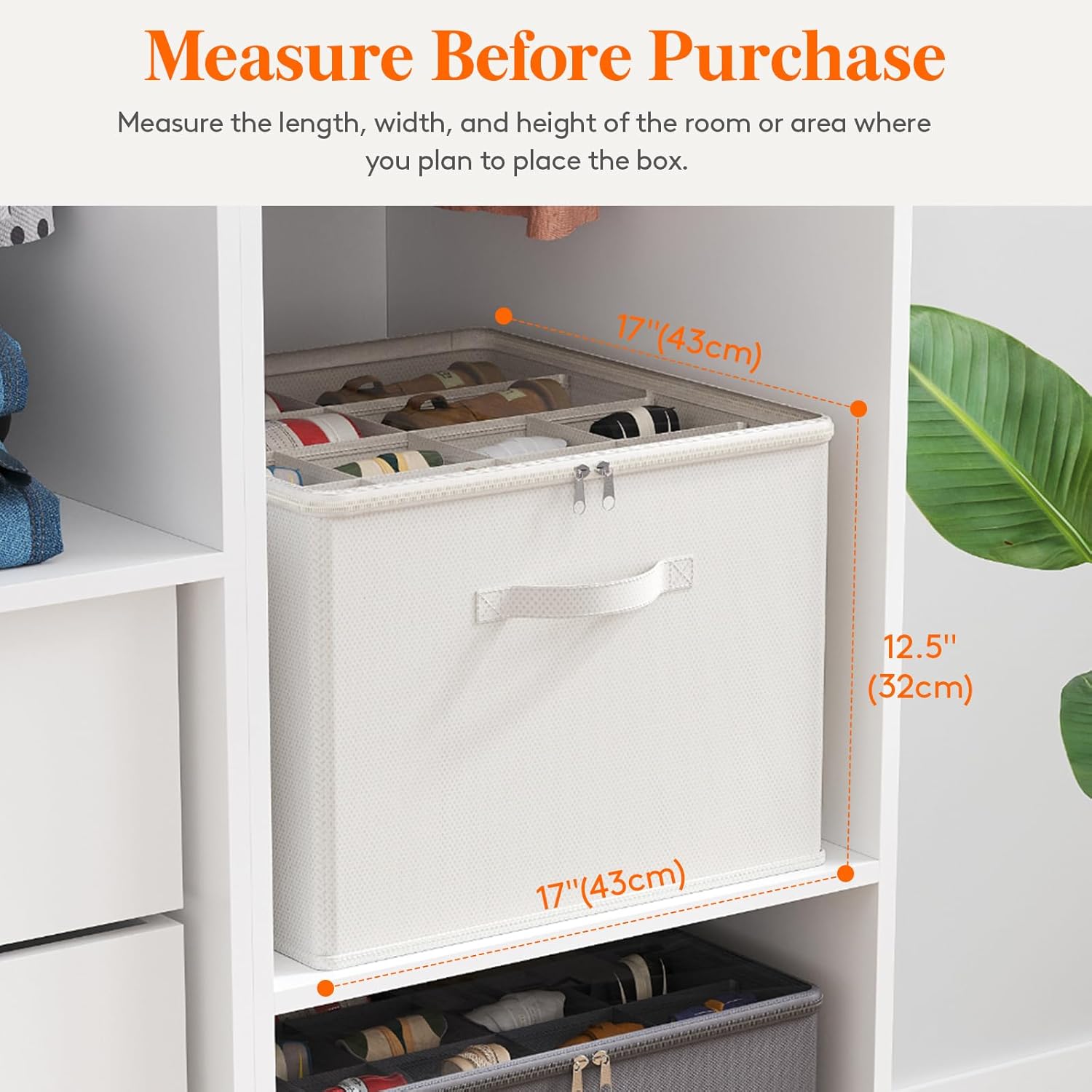 - Spacious Capacity: This 17"x17"x12.5" (43x43x32cm) shoe organizer holds 12-16 pairs. It features 8 small (11x11cm) and 4 large (21x14cm) compartments for all footwear types. Measure the length, width, and height of the room where you plan to place the box