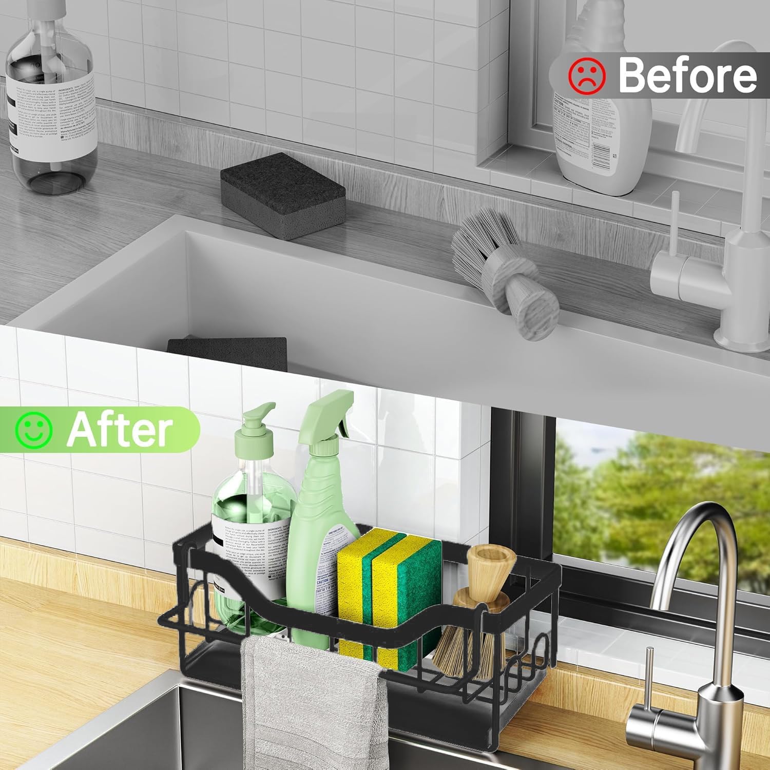 - High-Quality Material: Kitchen Sink Organizer Made of stainless steel with a durable anti-rust coating. Sturdy, resistant to bending, and suitable for long-lasting use even in humid environments.