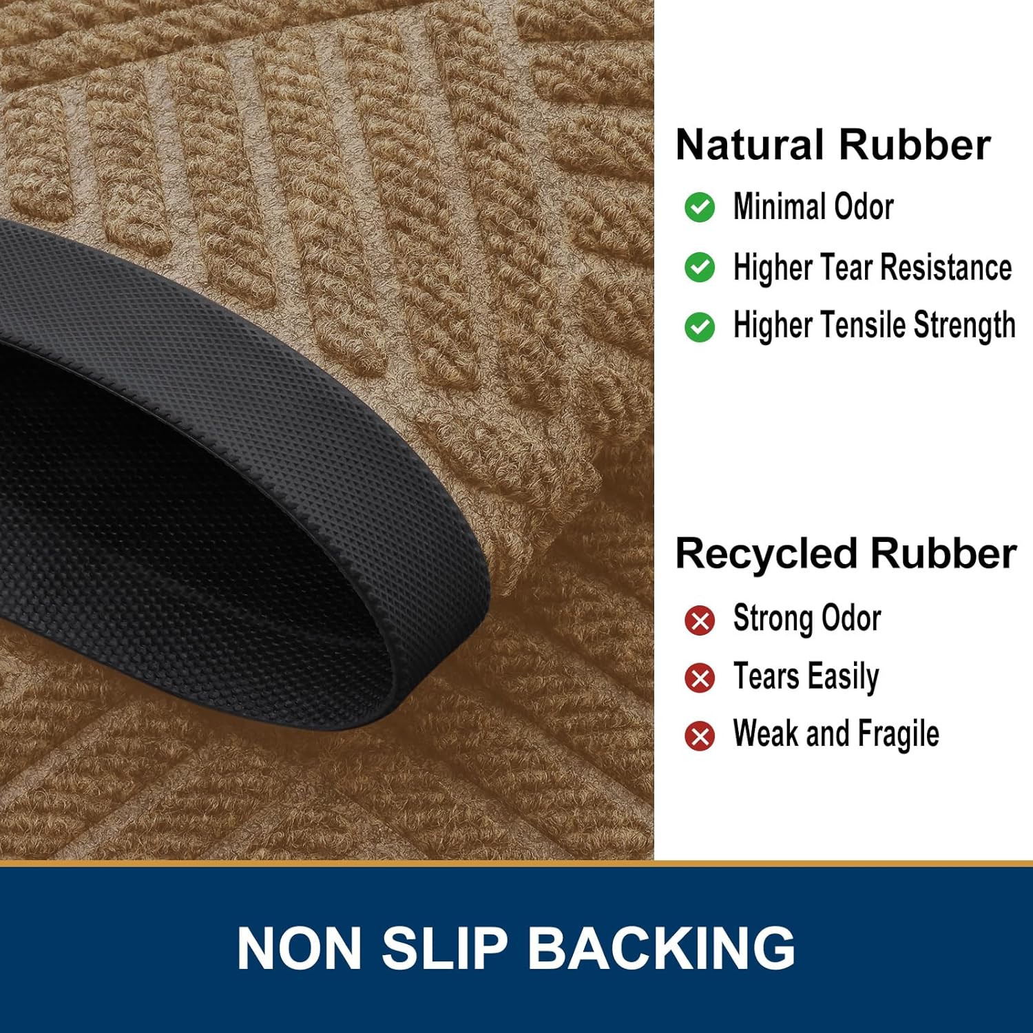 - Sturdy & Non-Faded: Good quality natural rubber makes the door mat long-lasting. Excellent tensile strength and not easy to tear withstand all weather and seasonal changes. Odorless and fastness to fading makes the process of reuse more pleasant