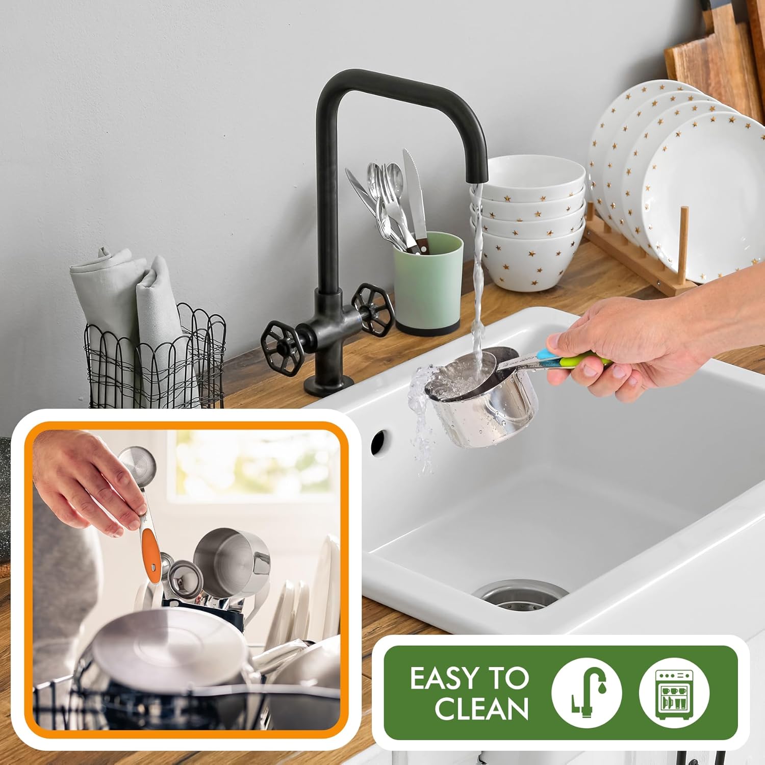 - Stackable Design: The nesting cups save space and make storage easy, keeping your kitchen organized.