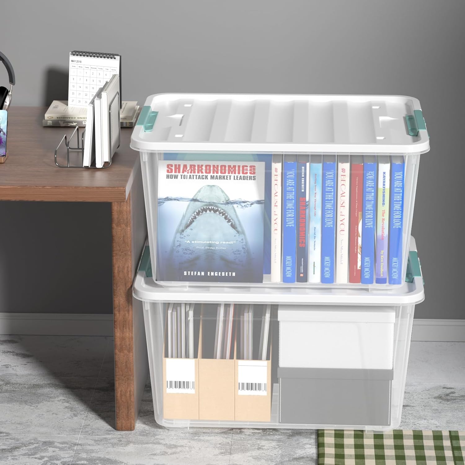 Zopnny 2-Pack Large Latching Box, 85 Quart Plastic Storage Bin with Lid, Stackable Totes w/Wheels, Clear