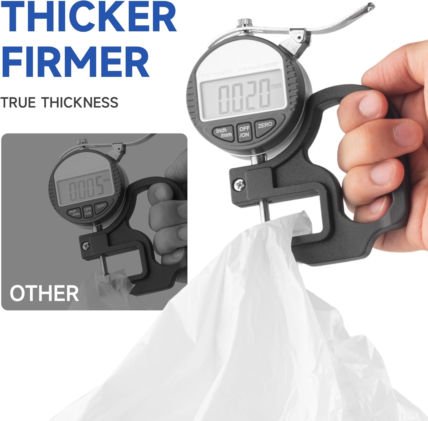 - [TEAR RESISTANCE] Much thicker than regular rubbish bags with excellent tear and tensile resistance. Enhanced durability ensures that they can withstand sharp objects and heavy weights without tearing, providing you with a reliable, long-lasting trash containment solution.