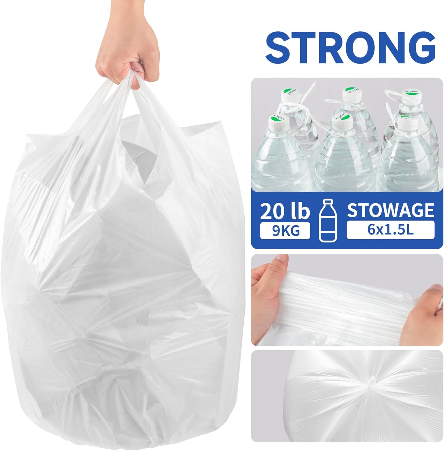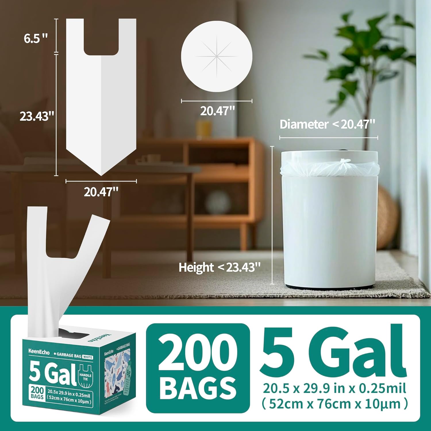Small Trash Bags with Handles 5 Gallon 200 Count White - Ocean Plastic Upcycling - Plastic Garbage Bags, Can Bin & Waste Basket Liner for Kitchen, Bathroom, Office and Pets