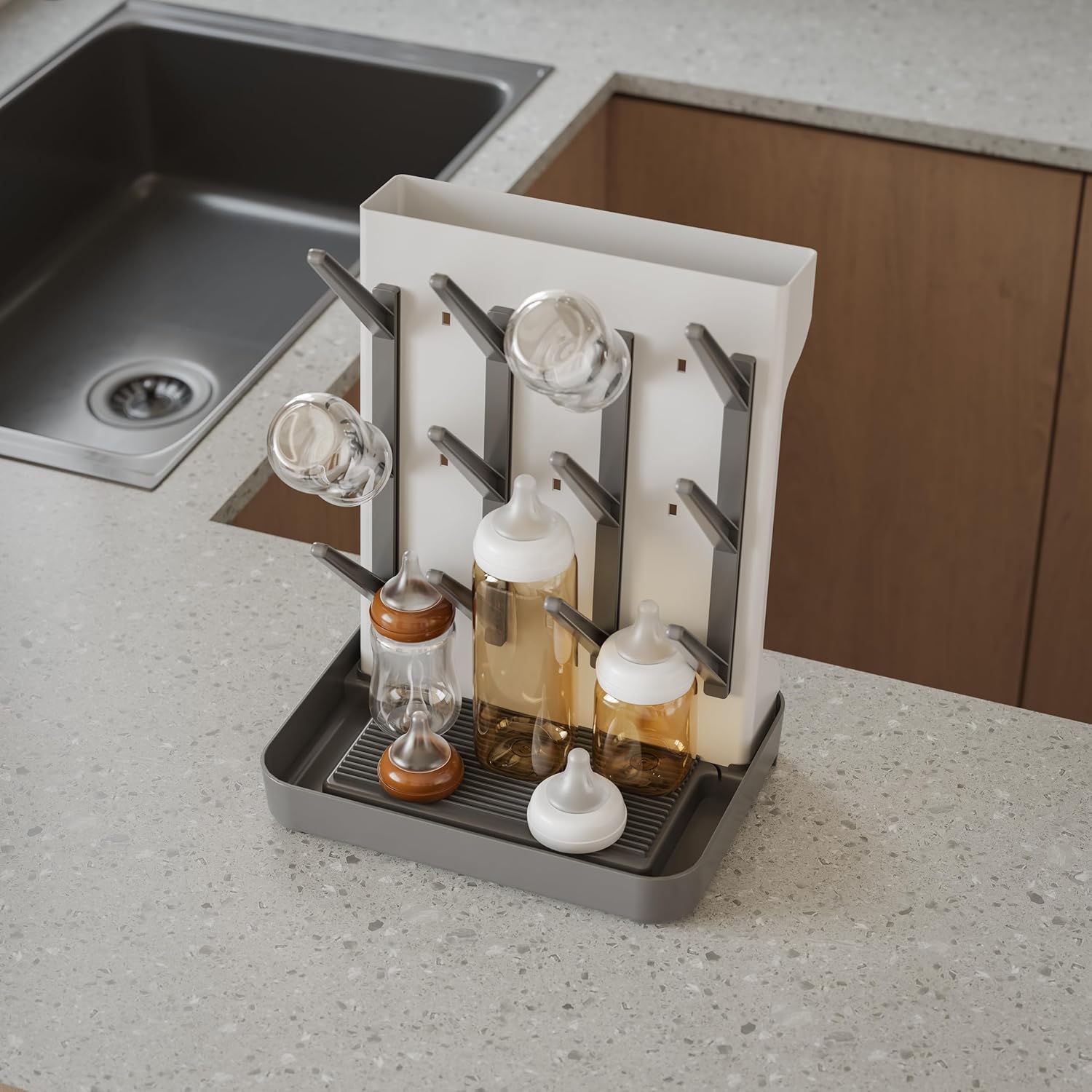 IEEK Baby Bottle Drying Rack,Large Vertical Drying Tower Bottle Rack Holder Space Saving Standing Drying Rack for Countertop-Holds 12 Baby Bottles and Cup,Etachable Travel Bottle Rack,Grey and White